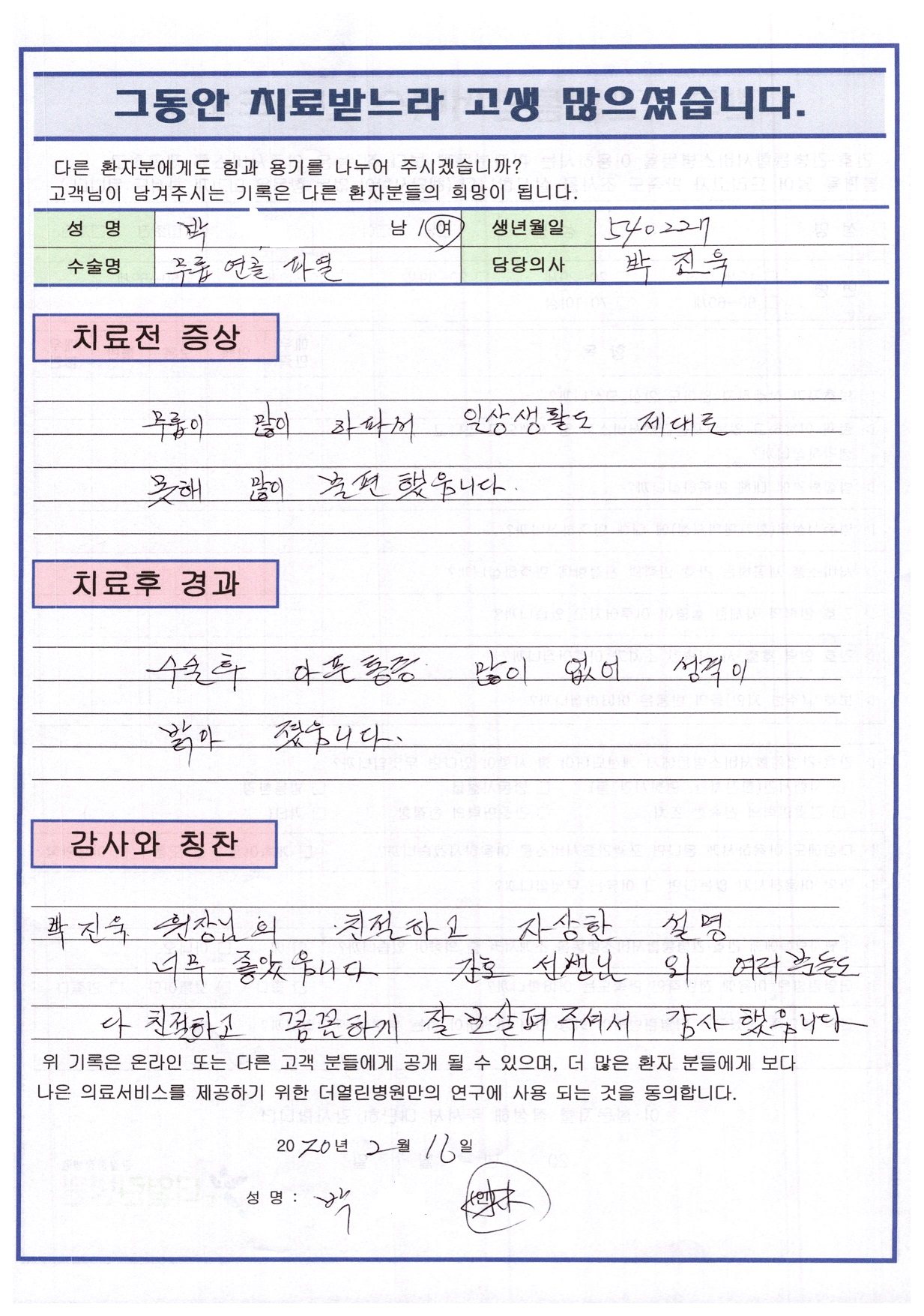 좌측 반월상연골절제술 페이지 정보 작성자 관리자 댓글 0건 조회 70회 작성일 22-03-05 09:51 본문 목록 이전글우측 반월상연골절제술 22.03.05 다음글우측 반월상연골절제술 22.03.05 댓글목록 댓글목록 등록된 댓글이 없습니다.