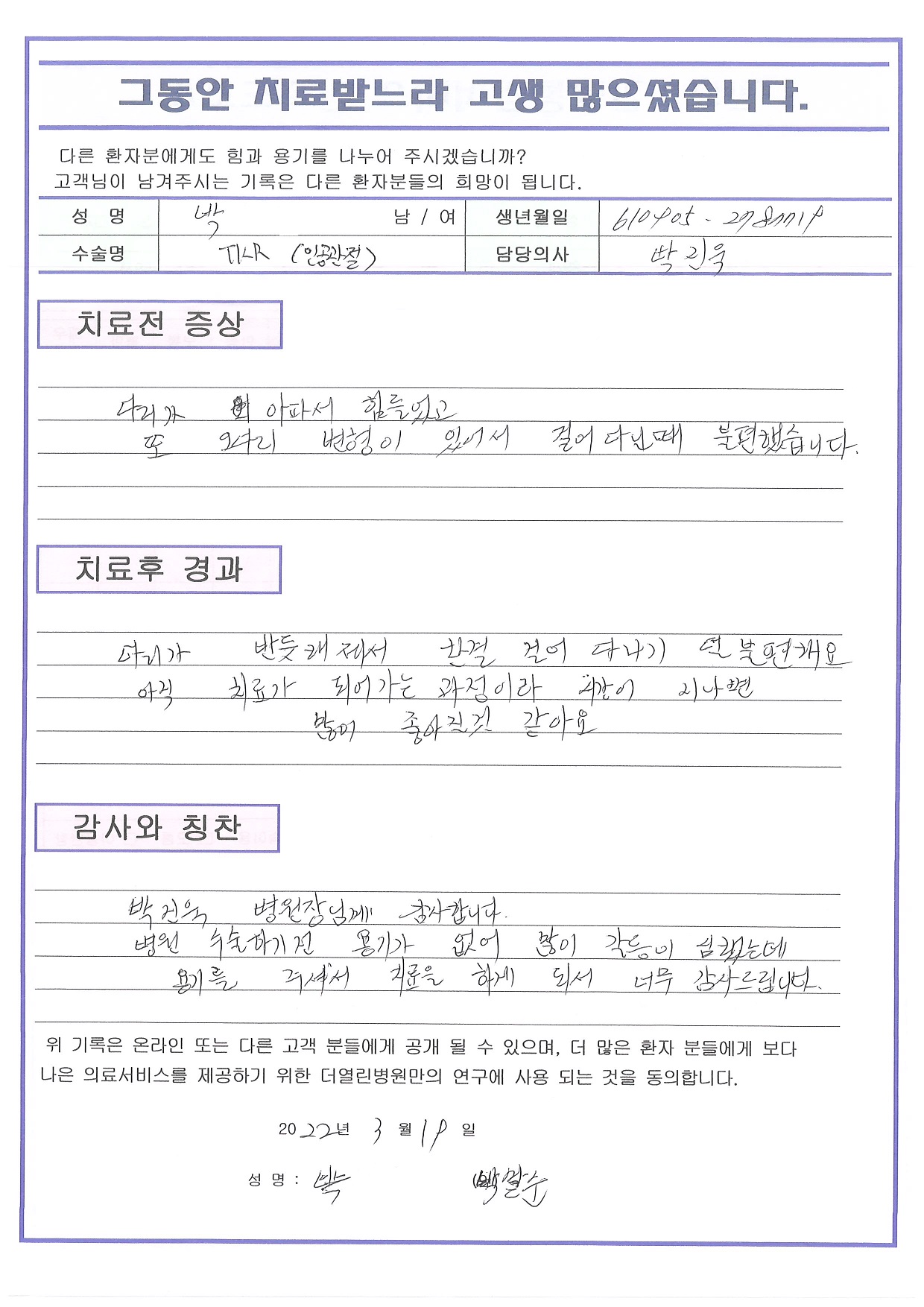 양쪽 무릎 인공관절치환술 페이지 정보 작성자 관리자 댓글 0건 조회 75회 작성일 22-04-04 11:37 본문 목록 이전글반월상 연골 봉합술 22.04.04 다음글좌측 반월상 연골 절제술 22.04.04 댓글목록 댓글목록 등록된 댓글이 없습니다.