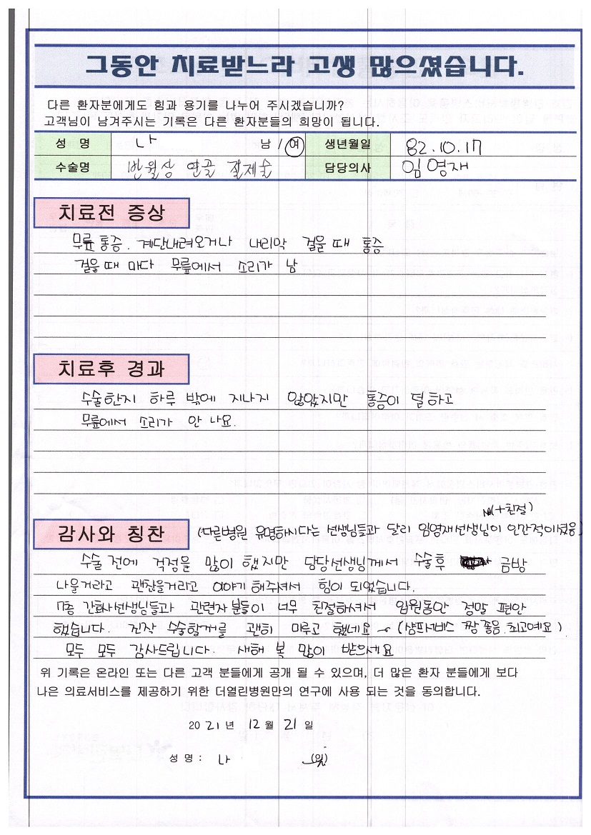 반월상 연골 절제술 페이지 정보 작성자 관리자 댓글 0건 조회 63회 작성일 22-01-05 16:00 본문 목록 이전글좌측 반월상 연골 절제술 22.01.05 다음글인대 연골 수술 22.01.05 댓글목록 댓글목록 등록된 댓글이 없습니다.