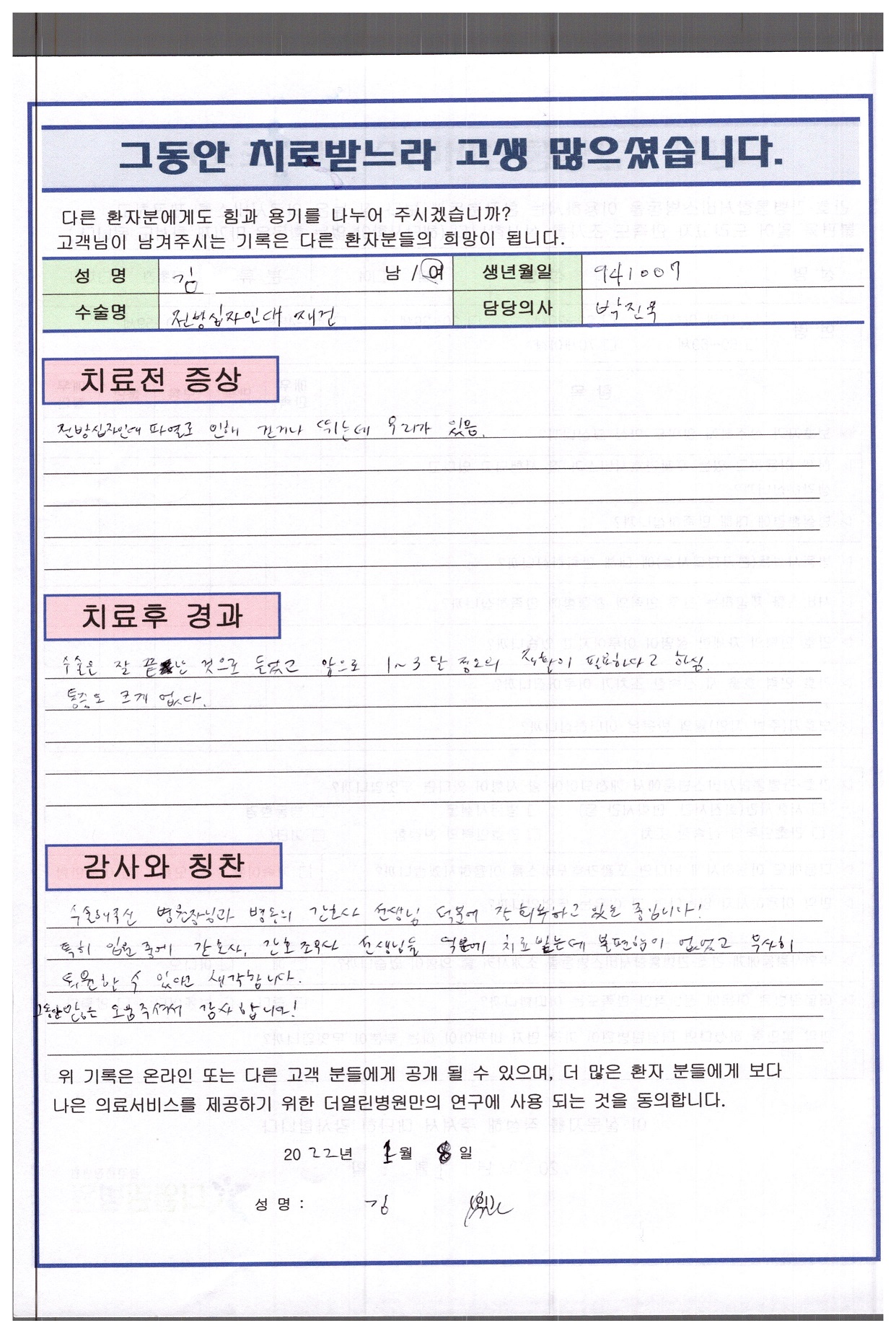 좌측 슬관절 전방십자인대 재건술 페이지 정보 작성자 관리자 댓글 0건 조회 72회 작성일 22-02-04 13:24 본문 목록 이전글어깨 인대 수술 22.02.04 다음글우측 슬관절 내측반월상연골 절제술 22.02.04 댓글목록 댓글목록 등록된 댓글이 없습니다.