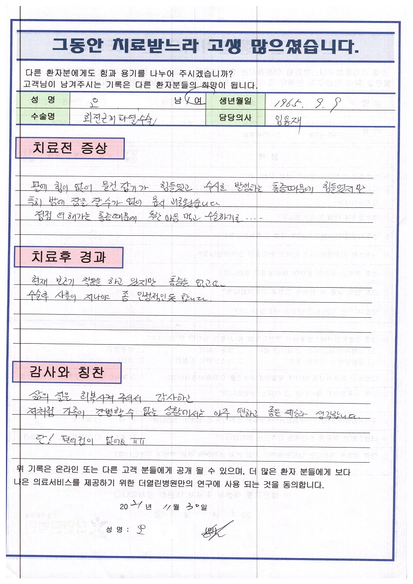회전근개파열 페이지 정보 작성자 관리자 댓글 0건 조회 61회 작성일 21-12-03 16:59 본문 목록 이전글반월상연골절제술 21.12.03 다음글양쪽 퇴행성관절염 21.12.03 댓글목록 댓글목록 등록된 댓글이 없습니다.