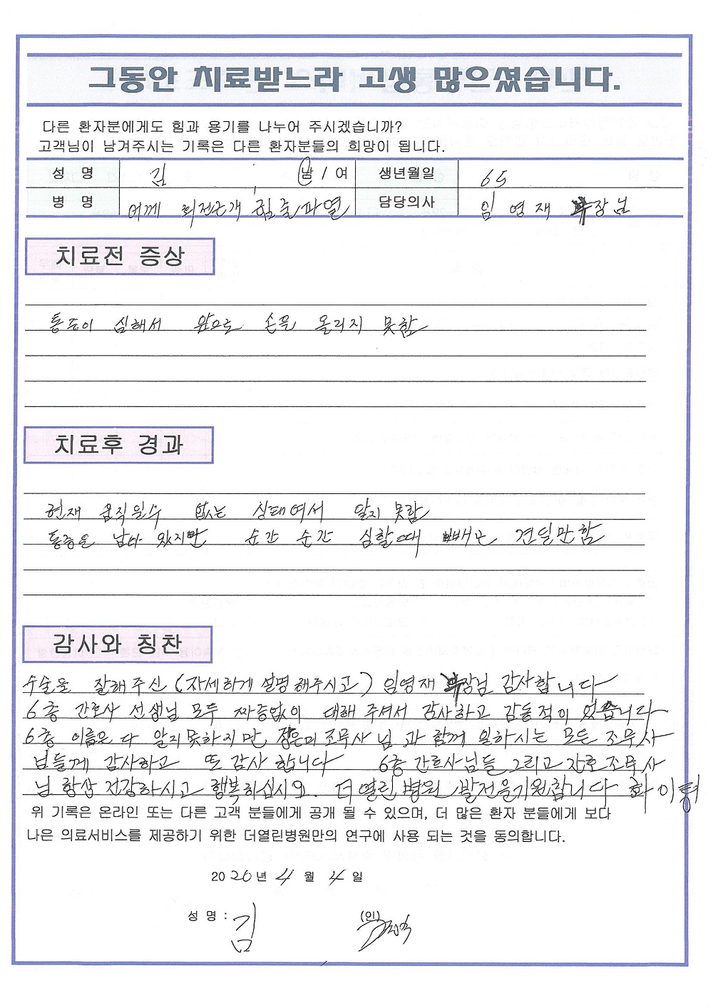 좌측 견관절 회전근개 파열 페이지 정보 작성자 관리자 댓글 0건 조회 76회 작성일 20-05-08 01:32 본문 . 목록 이전글우측 슬관절 퇴행성 관절염 20.06.05 다음글좌측 슬관절 전 십자인대 파열 20.05.08 댓글목록 댓글목록 등록된 댓글이 없습니다.