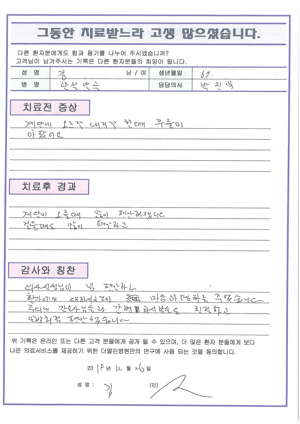 우측 슬관절 내측 반월상연골 찢김 페이지 정보 작성자 관리자 댓글 0건 조회 71회 작성일 20-01-04 22:50 본문 . 목록 이전글양쪽 슬관절 퇴행성 관절염 20.01.04 다음글양쪽 슬관절 퇴행성 관절염 19.12.05 댓글목록 댓글목록 등록된 댓글이 없습니다.