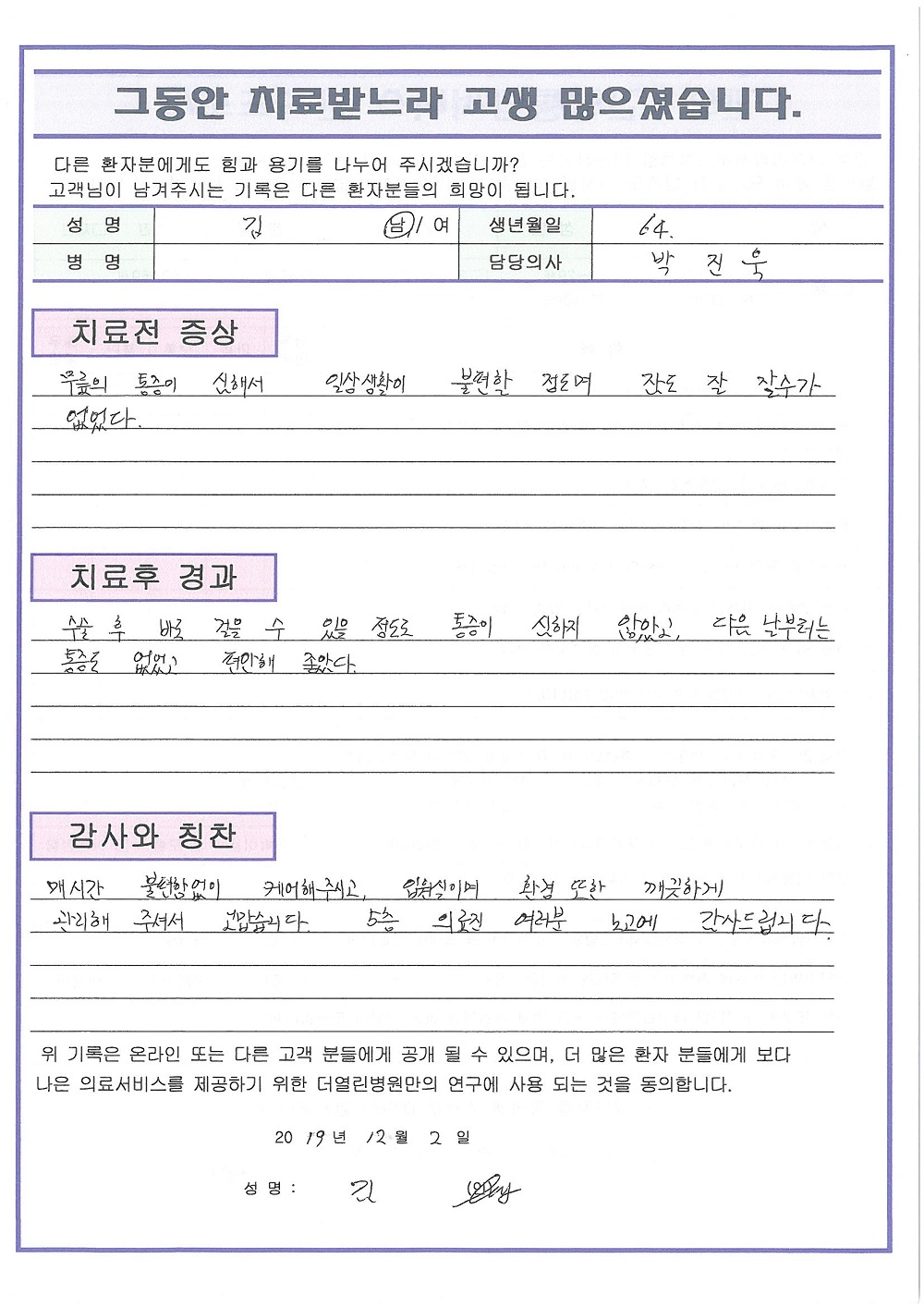 좌측 슬관절 내측 반월상연골 찢김 페이지 정보 작성자 관리자 댓글 0건 조회 71회 작성일 20-01-04 22:52 본문 . 목록 이전글양쪽 슬관절 퇴행성 관절염 20.01.04 다음글양쪽 슬관절 퇴행성 관절염 20.01.04 댓글목록 댓글목록 등록된 댓글이 없습니다.