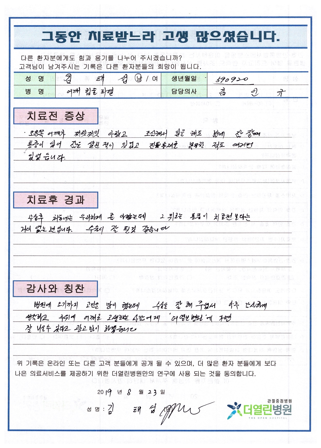 우측 견관절 회전근개 파열 페이지 정보 작성자 관리자 댓글 0건 조회 74회 작성일 19-09-03 20:20 본문 . 목록 이전글좌측 슬관절 퇴행성 관절염 19.10.03 다음글좌측 슬관절 내측 및 외측 반달연골의 찢김 19.09.03 댓글목록 댓글목록 등록된 댓글이 없습니다.