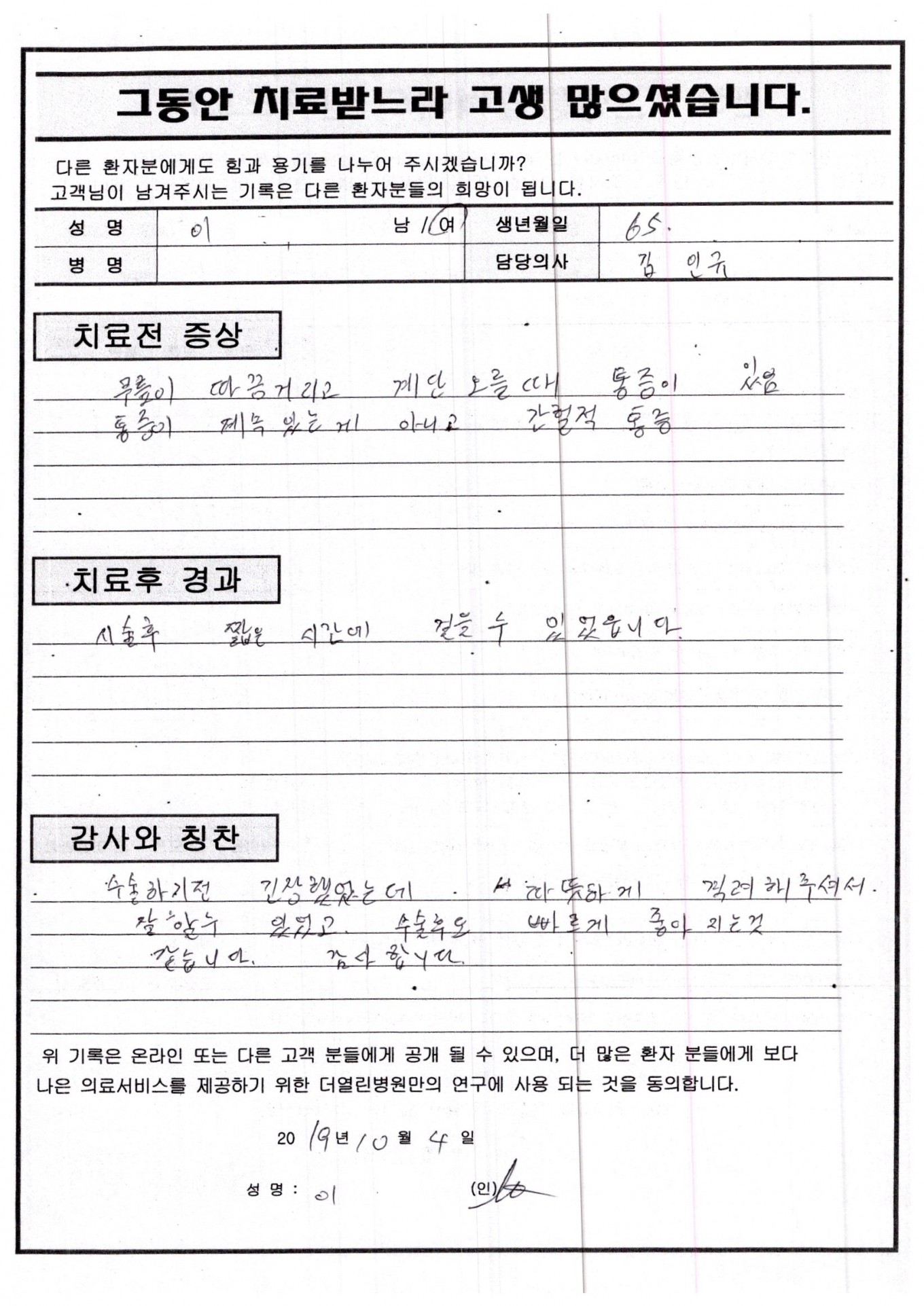 좌측 슬관절 내측 반달연골의 찢김 페이지 정보 작성자 관리자 댓글 0건 조회 70회 작성일 19-11-05 00:39 본문 . 목록 이전글좌측 슬관절 퇴행성 관절염 19.11.05 다음글우측 슬관절 퇴행성 관절염 19.11.02 댓글목록 댓글목록 등록된 댓글이 없습니다.