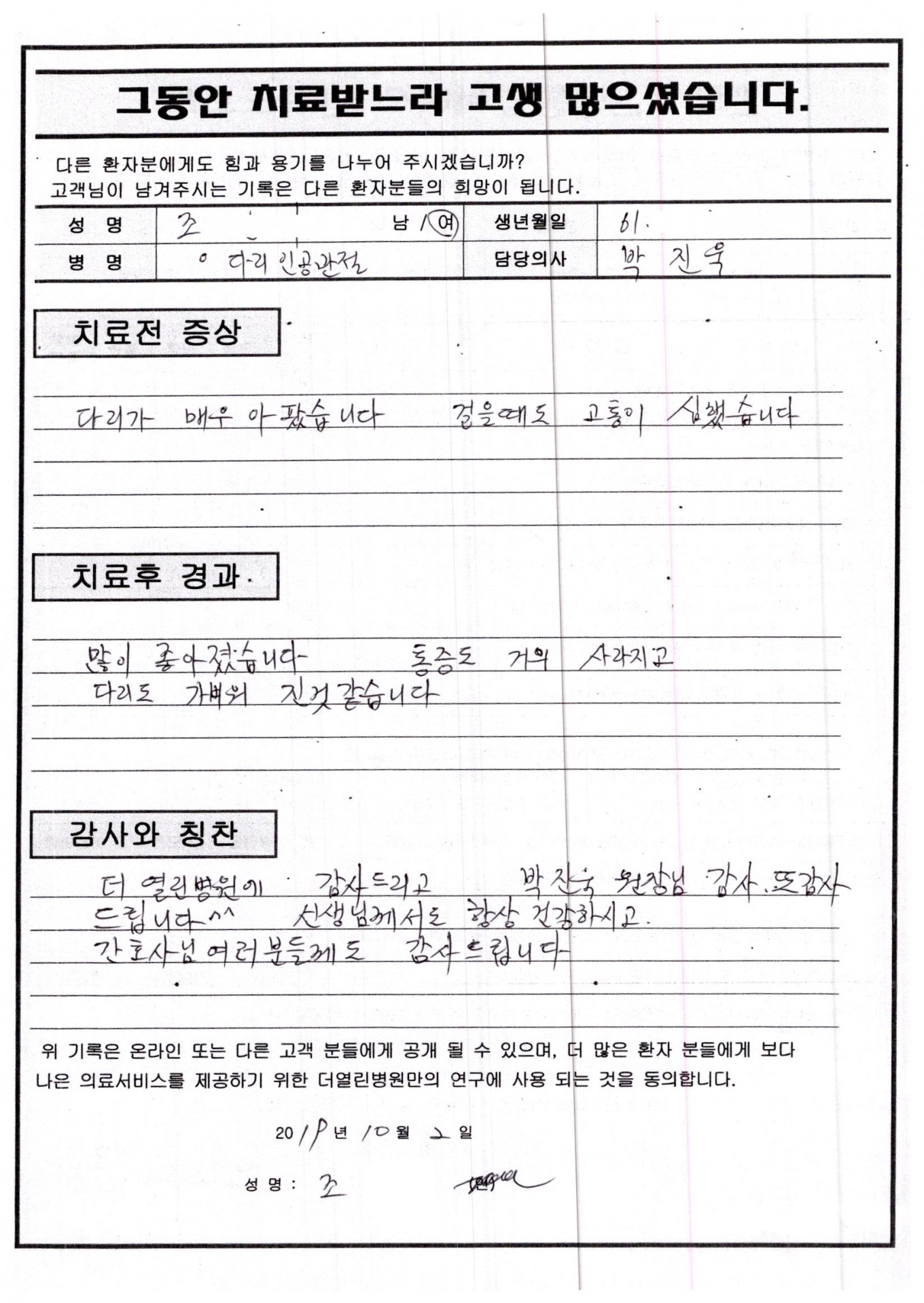 좌측 슬관절 퇴행성 관절염 페이지 정보 작성자 관리자 댓글 0건 조회 65회 작성일 19-11-05 00:40 본문 . 목록 이전글우측 슬관절 퇴행성 관절염 19.12.05 다음글좌측 슬관절 내측 반달연골의 찢김 19.11.05 댓글목록 댓글목록 등록된 댓글이 없습니다.