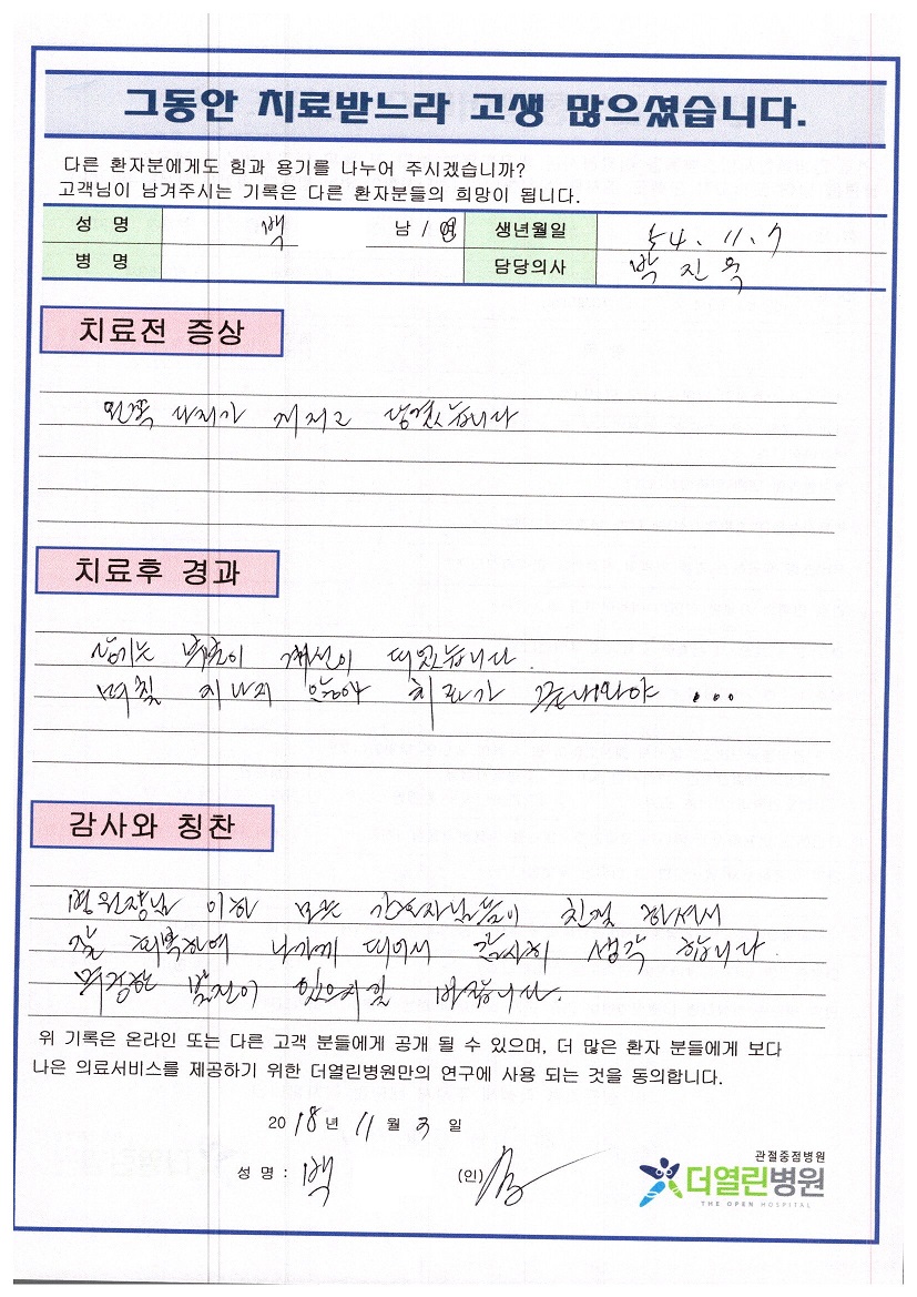 오래된 양동이손잡이모양의 찢김, 내측반달연골 페이지 정보 작성자 관리자 댓글 0건 조회 78회 작성일 18-12-03 19:44 본문 . 목록 이전글양쪽 원발성 무릎관절증 18.12.03 다음글좌측 견관절 회전근개 파열 18.12.03 댓글목록 댓글목록 등록된 댓글이 없습니다.