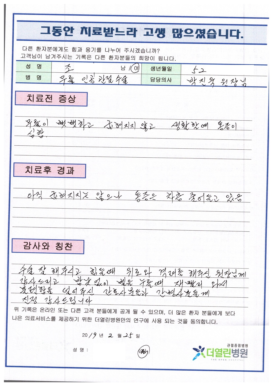 우측 슬관절 퇴행성 관절염 페이지 정보 작성자 관리자 댓글 0건 조회 77회 작성일 19-03-10 19:05 본문 . 목록 이전글양쪽 슬관절 퇴행성 관절염 19.03.10 다음글우측 견관절 회전근개증후군 19.02.04 댓글목록 댓글목록 등록된 댓글이 없습니다.