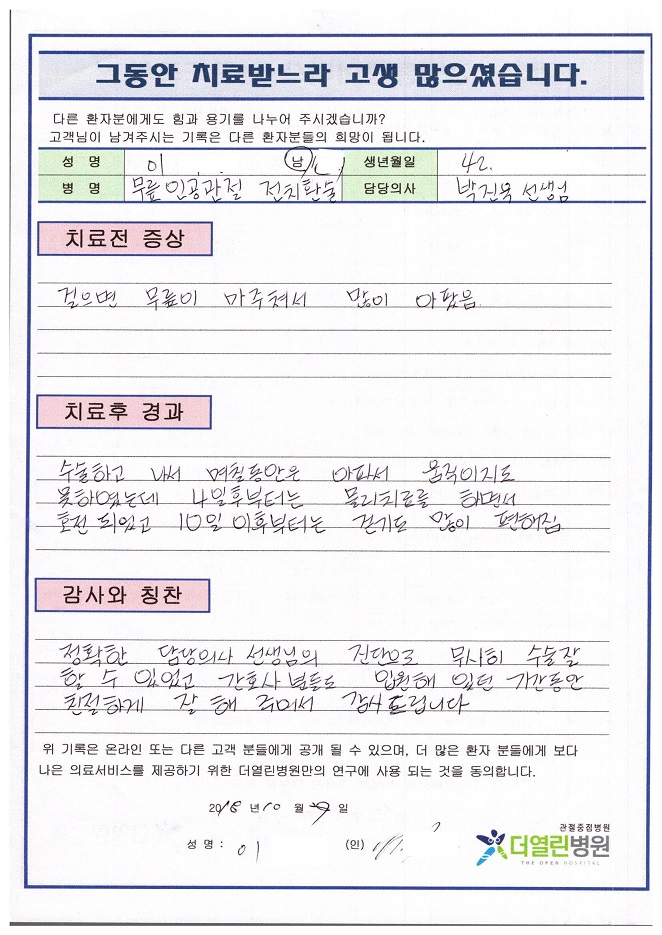 좌측 일차성 무릎관절증 페이지 정보 작성자 관리자 댓글 0건 조회 64회 작성일 18-11-02 23:45 본문 . 목록 이전글우측 원발성 무릎관절증 18.11.02 다음글내측반달연골의 찢김 18.10.02 댓글목록 댓글목록 등록된 댓글이 없습니다.