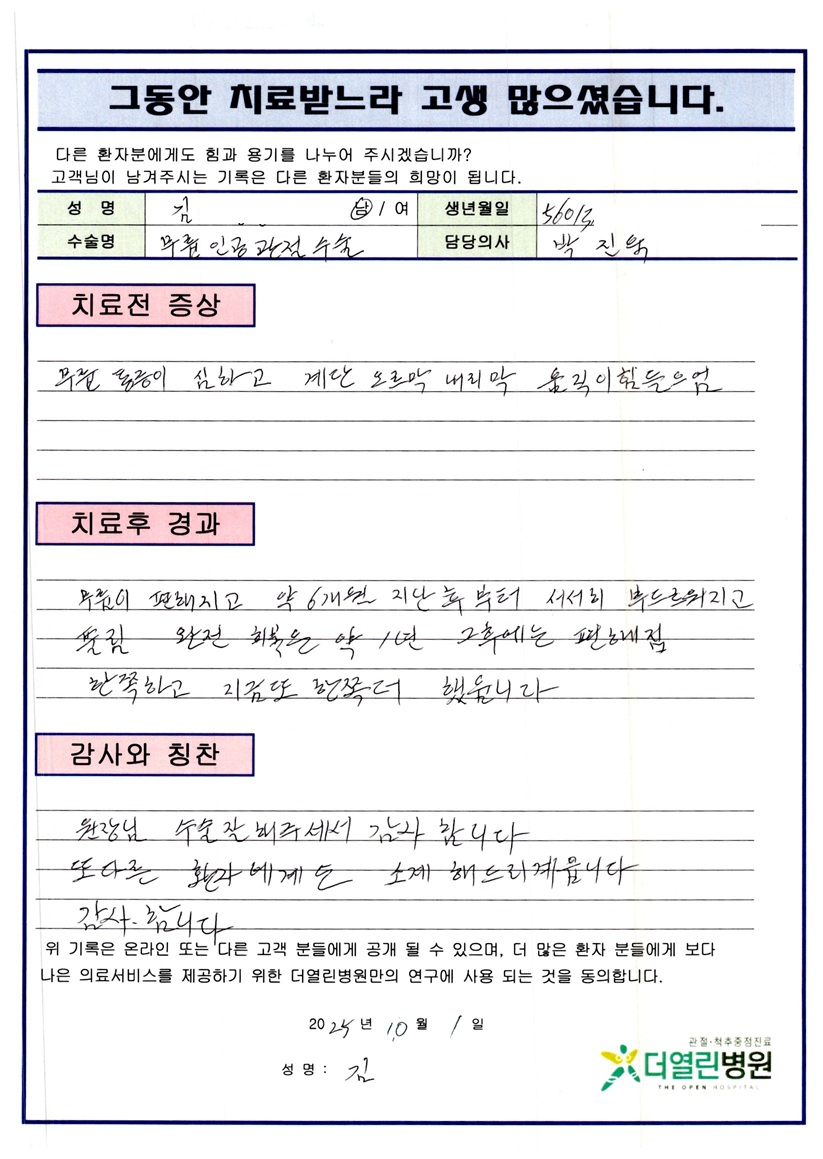 좌측 무릎 인공관절치환술 페이지 정보 작성자 관리자 댓글 0건 조회 31회 작성일 25-11-06 13:20 본문 목록 이전글우측 발목 체내금속제거술 25.11.06 다음글우측 무릎 내측반월상연골부분절제술 25.10.04 댓글목록 댓글목록 등록된 댓글이 없습니다.