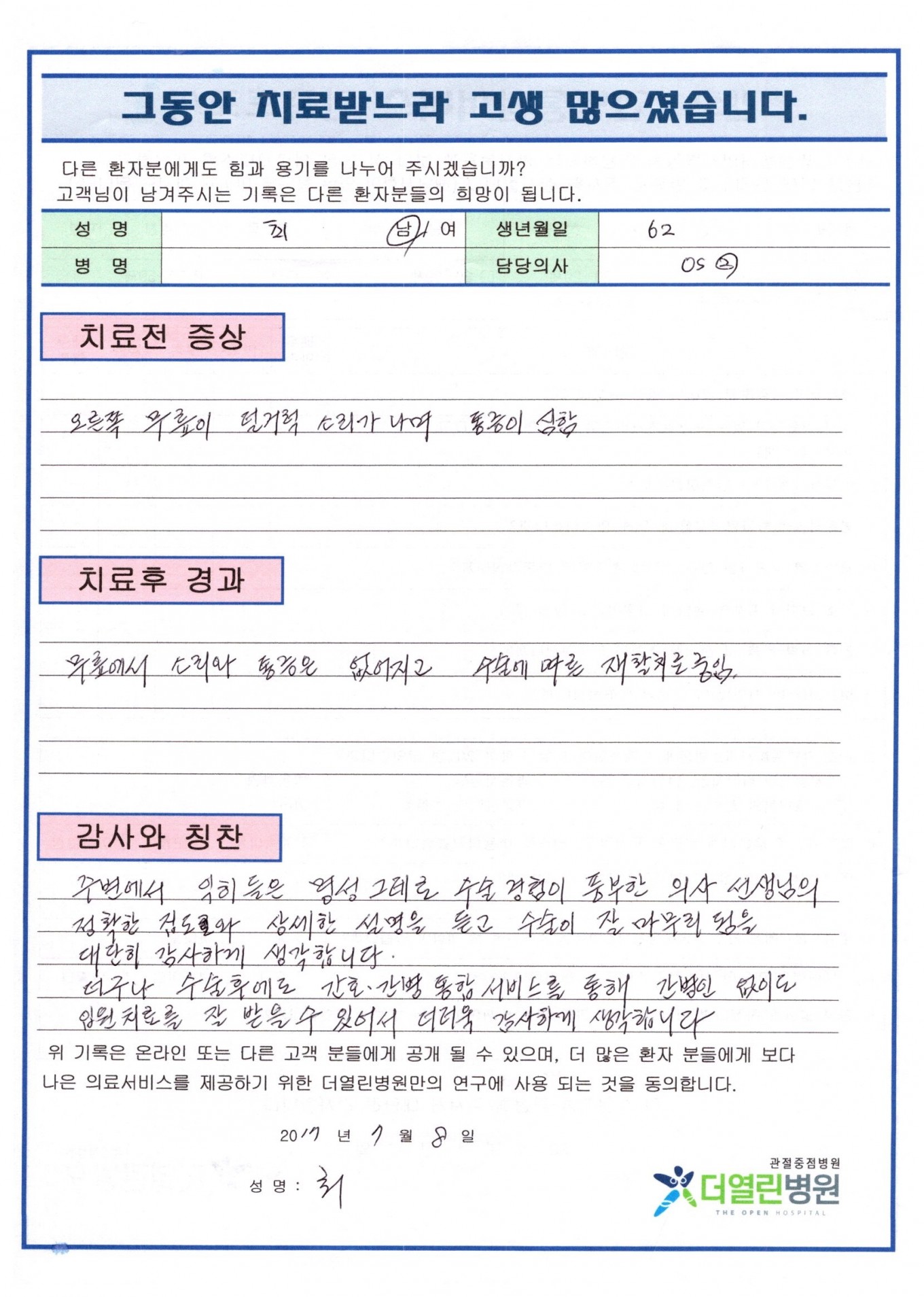 우측 원발성 무릎관절증 페이지 정보 작성자 관리자 댓글 0건 조회 88회 작성일 17-08-04 23:11 본문 . 목록 이전글오래된 찢김 또는 손상으로 인한 반달연골의 장애 17.08.04 다음글양쪽 원발성 무릎관절증 17.07.09 댓글목록 댓글목록 등록된 댓글이 없습니다.