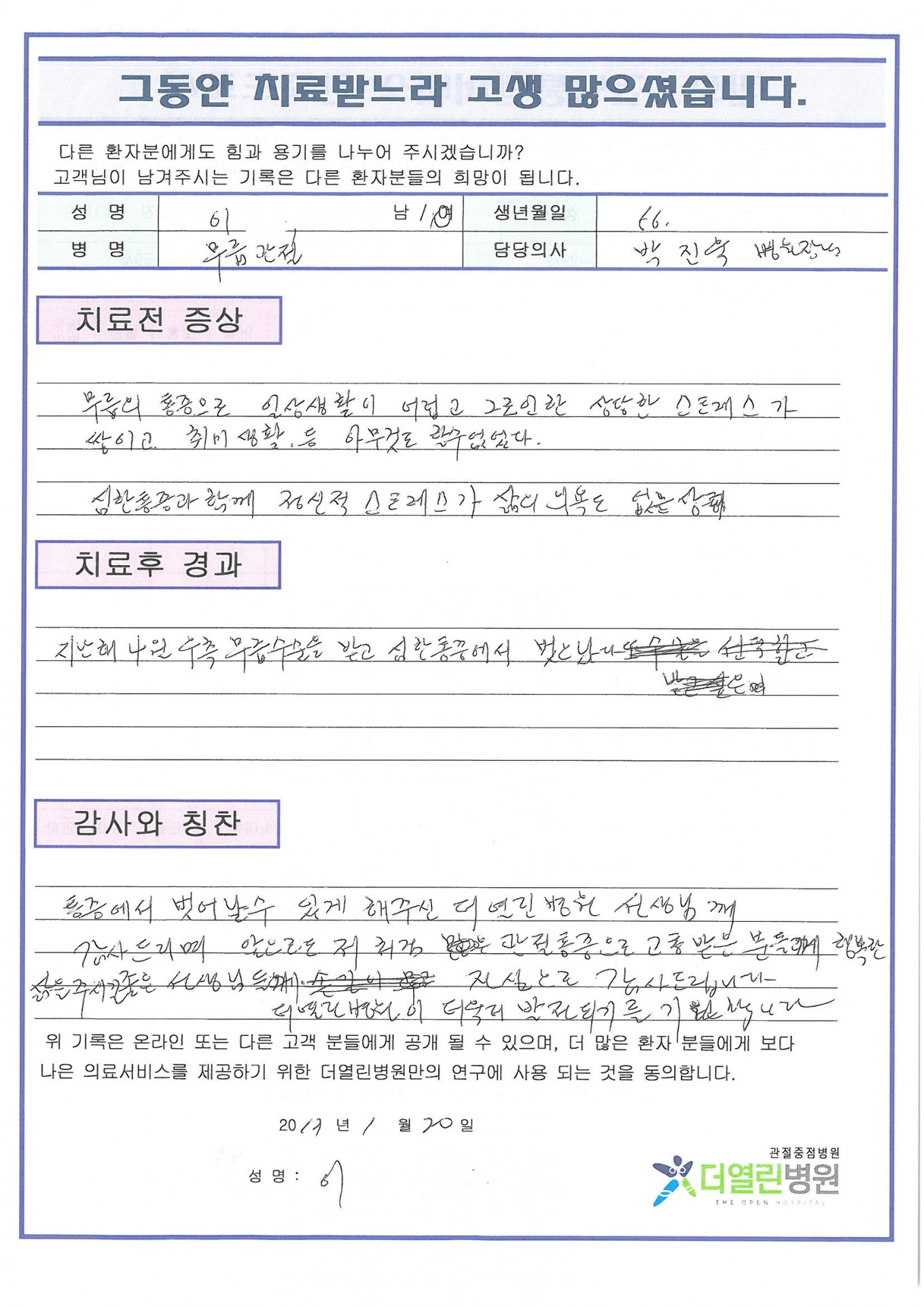 양쪽 일차성 무릎관절증 페이지 정보 작성자 관리자 댓글 0건 조회 69회 작성일 17-02-07 22:29 본문 . 목록 이전글생식관의 기타 인공삽입장치, 삽입물 및 이식편의 기계적 합병증 17.02.08 다음글내측반달연골의 찢김 17.02.07 댓글목록 댓글목록 등록된 댓글이 없습니다.