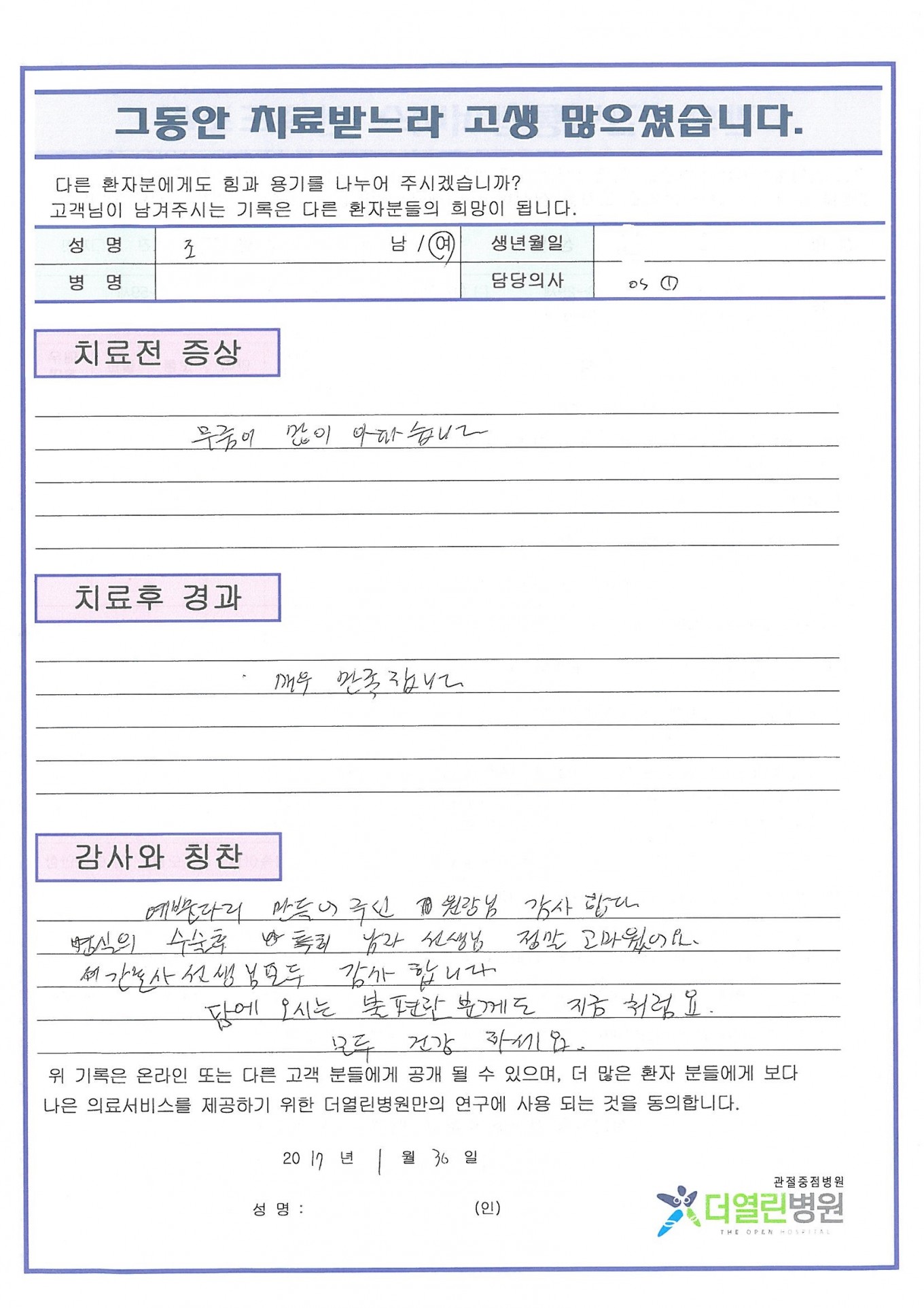 양쪽 원발성 무릎관절증 페이지 정보 작성자 관리자 댓글 0건 조회 77회 작성일 17-02-08 21:11 본문 . 목록 이전글내측반달연골의 찢김 17.02.13 다음글양쪽 일차성 무릎관절증 17.02.08 댓글목록 댓글목록 등록된 댓글이 없습니다.