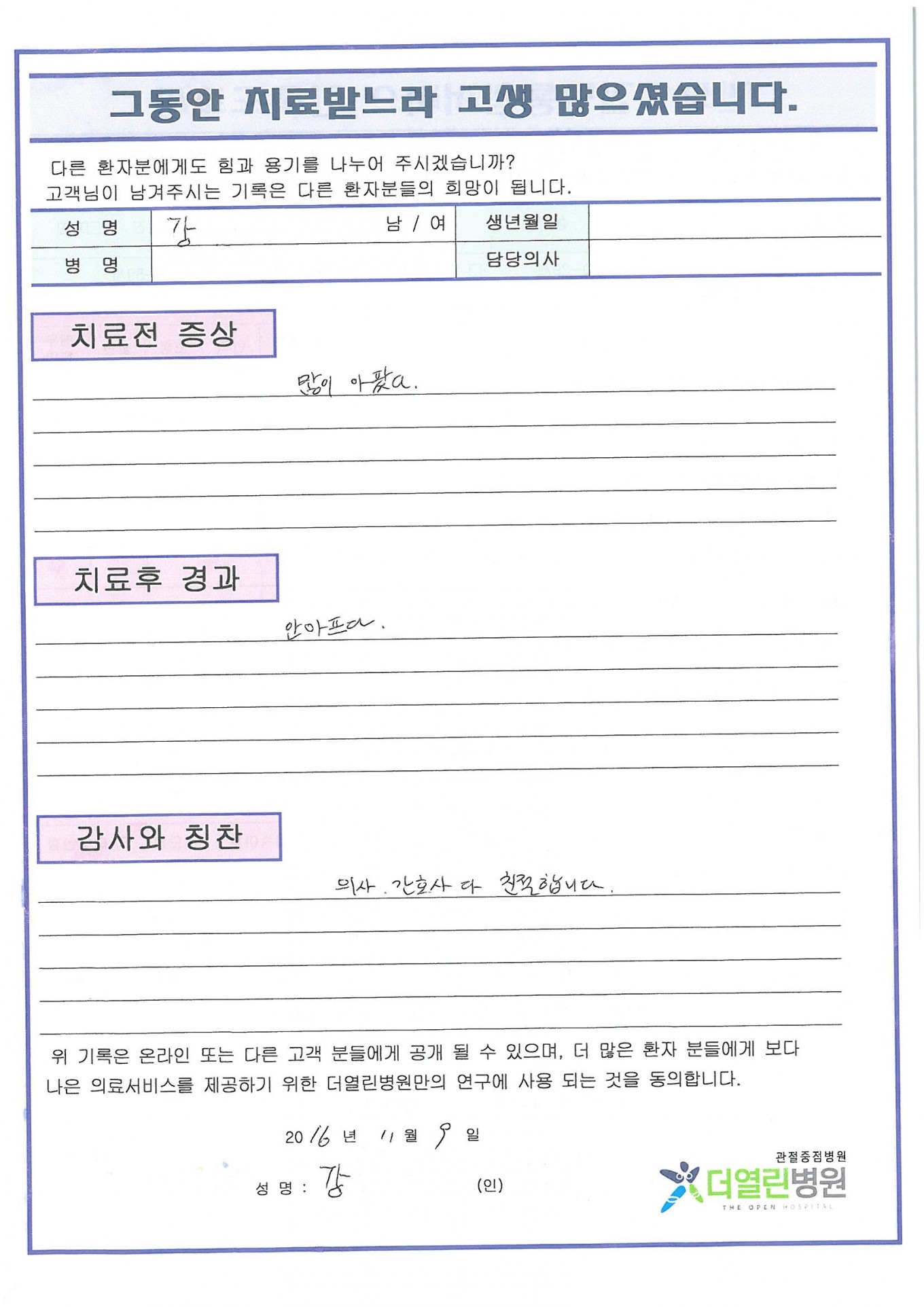 양쪽 원발성 무릎관절증 페이지 정보 작성자 관리자 댓글 0건 조회 71회 작성일 17-01-31 21:20 본문 . 목록 이전글양쪽 원발성 무릎관절증 17.02.04 다음글오래된 양동이손잡이모양의 찢김, 내측반달연골 17.01.31 댓글목록 댓글목록 등록된 댓글이 없습니다.