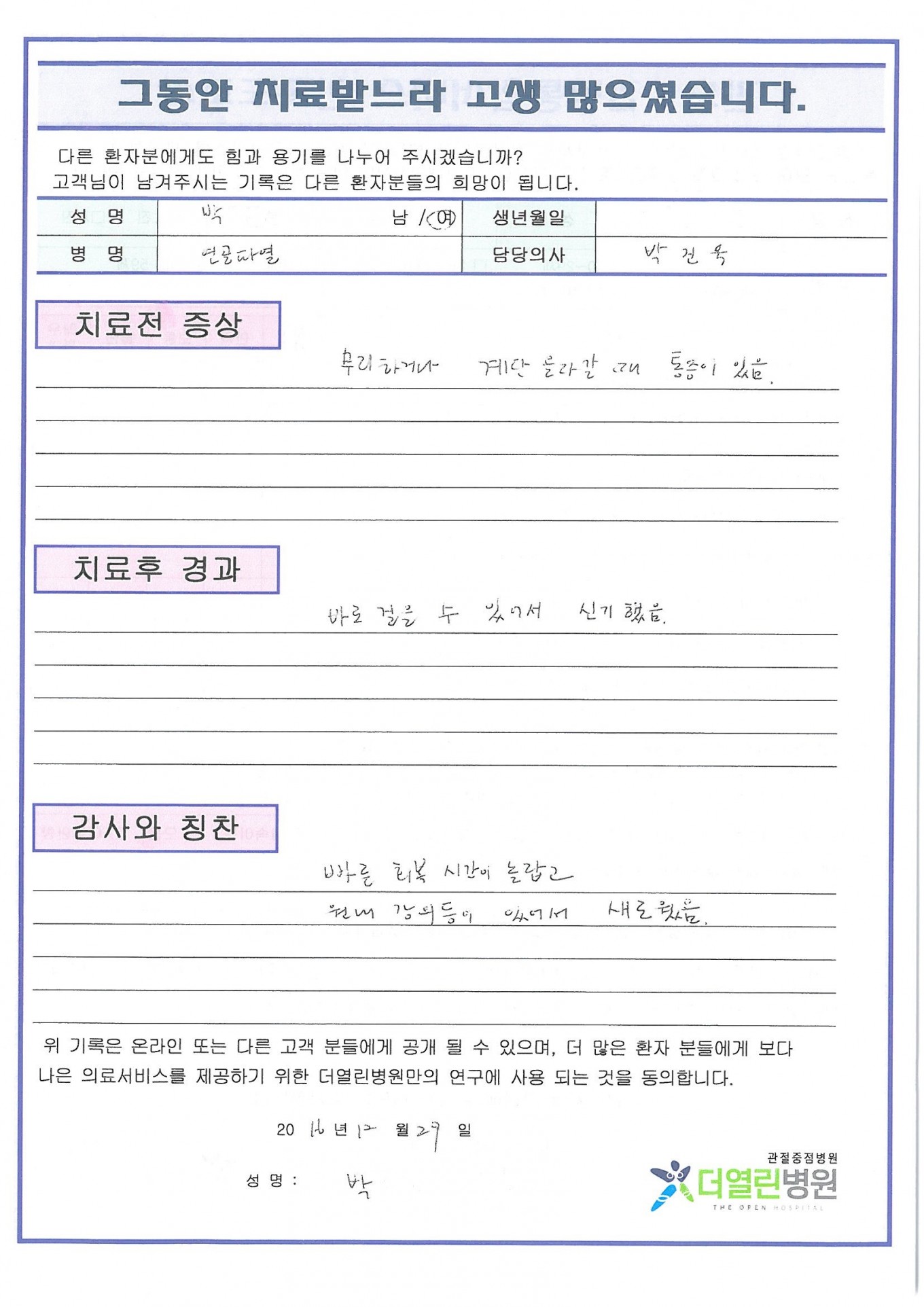 오래된 양동이손잡이모양의 찢김, 외측반달연골 페이지 정보 작성자 관리자 댓글 0건 조회 94회 작성일 17-01-23 20:58 본문 . 목록 이전글오래된 양동이손잡이모양의 찢김, 내측반달연골 17.01.23 다음글양쪽 일차성 무릎관절증 17.01.23 댓글목록 댓글목록 등록된 댓글이 없습니다.