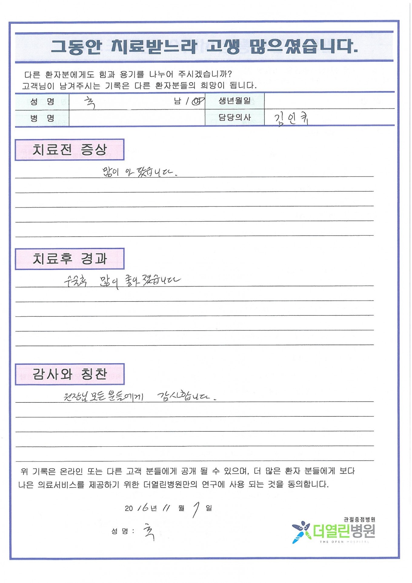 내측반달연골의 찢김 페이지 정보 작성자 관리자 댓글 0건 조회 79회 작성일 16-12-21 19:42 본문 . 목록 이전글양쪽 원발성 무릎관절증 16.12.21 다음글외측반달연골의 찢김 16.12.21 댓글목록 댓글목록 등록된 댓글이 없습니다.