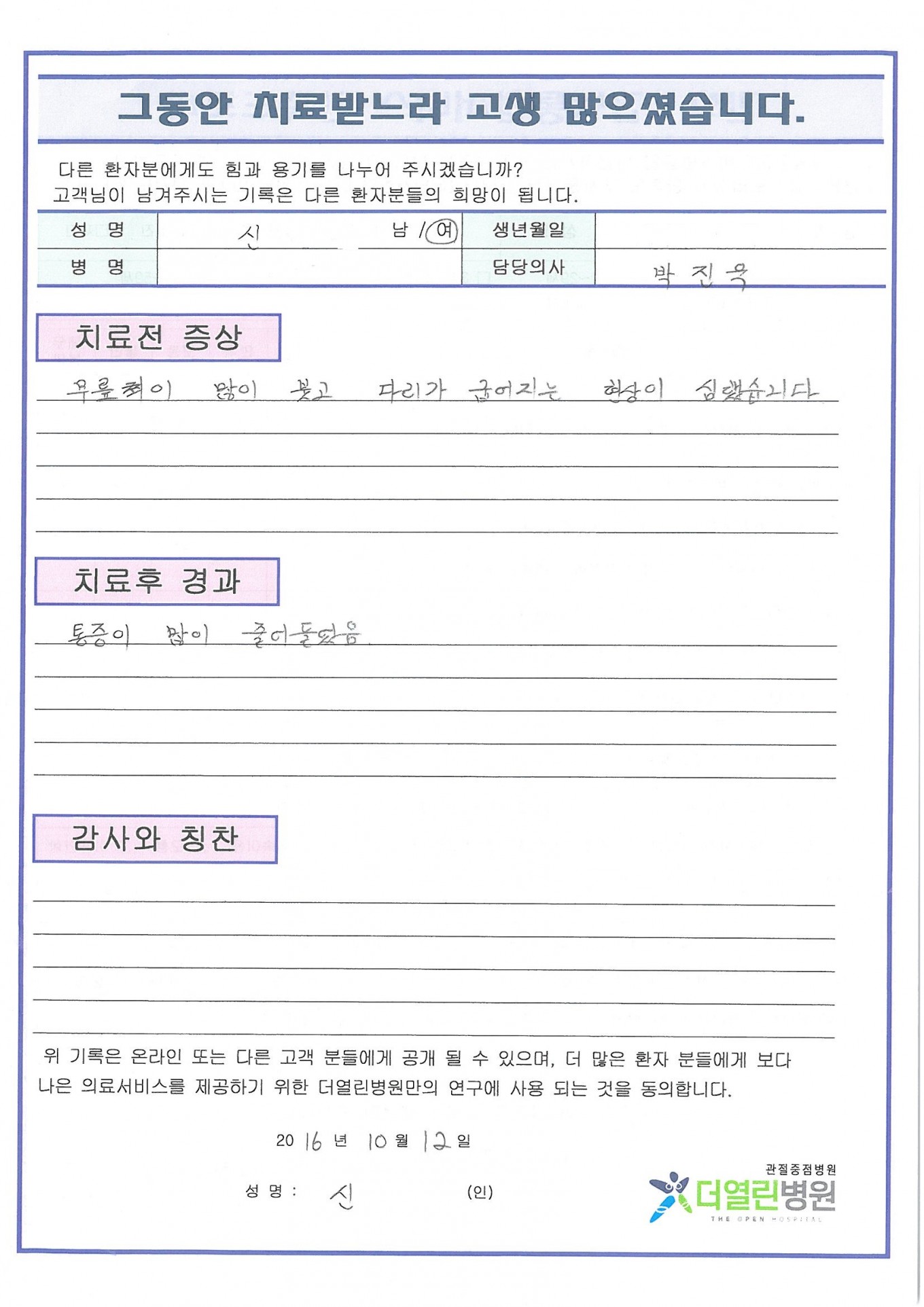 양쪽 원발성 무릎관절증 페이지 정보 작성자 관리자 댓글 0건 조회 64회 작성일 17-01-19 21:18 본문 . 목록 이전글양쪽 일차성 무릎관절증 17.01.21 다음글양쪽 원발성 무릎관절증 17.01.19 댓글목록 댓글목록 등록된 댓글이 없습니다.