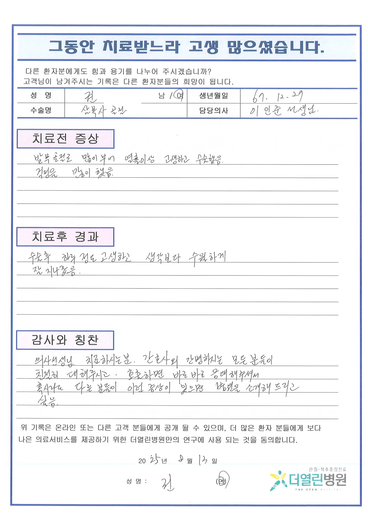 우측 발목 관혈적 정복술 및 내고정술 페이지 정보 작성자 관리자 댓글 0건 조회 65회 작성일 25-09-04 11:09 본문 목록 이전글위장염 및 결장염 25.09.04 다음글우측 관절경 반월상연골부분절제술 25.09.04 댓글목록 댓글목록 등록된 댓글이 없습니다.
