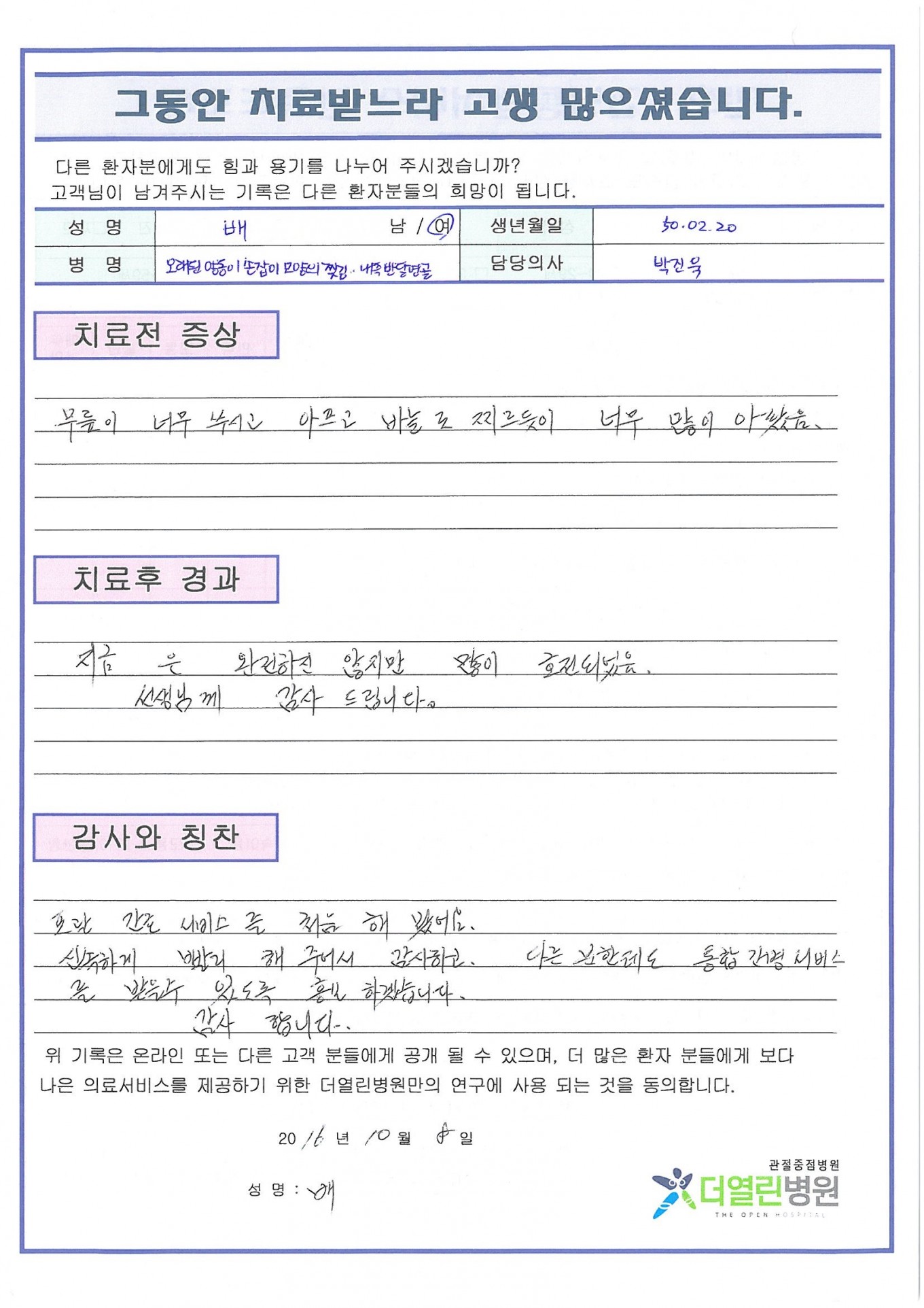 양쪽 일차성 무릎관절증 페이지 정보 작성자 관리자 댓글 0건 조회 79회 작성일 16-12-19 21:11 본문 . 목록 이전글양쪽 원발성 무릎관절증 16.12.19 다음글우릎 절골술(O자형다리) 16.12.18 댓글목록 댓글목록 등록된 댓글이 없습니다.