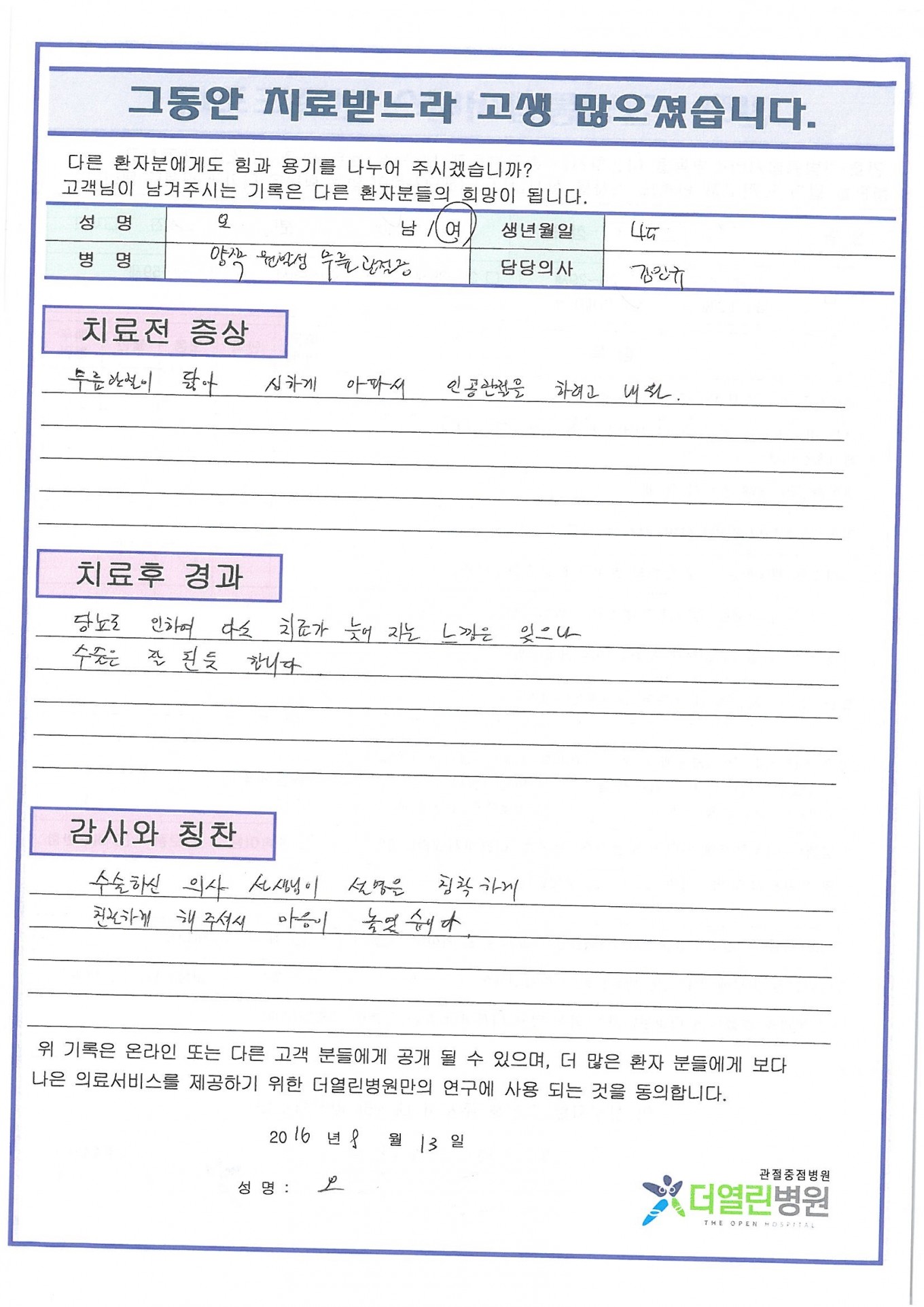 양측 원발성 무릎관절증 페이지 정보 작성자 관리자 댓글 0건 조회 72회 작성일 16-10-27 19:27 본문 . 목록 이전글좌측 무릎 퇴행성 관절염 16.10.27 다음글양측 원발성 무릎관절증 16.10.27 댓글목록 댓글목록 등록된 댓글이 없습니다.