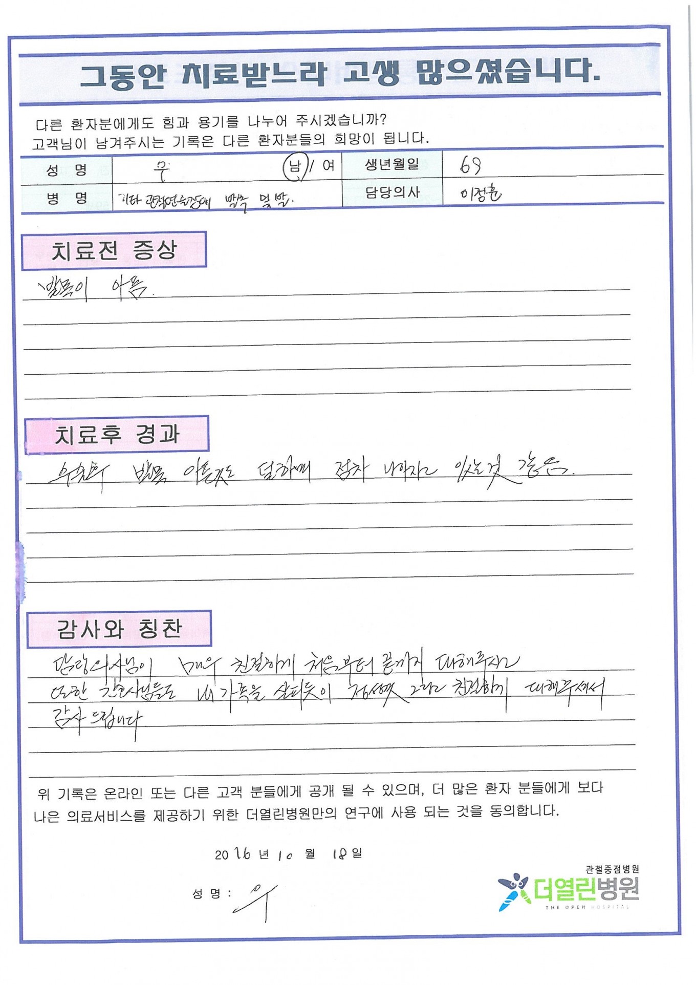 기타 관절연골장애 발목 및 발 페이지 정보 작성자 관리자 댓글 0건 조회 76회 작성일 16-11-06 10:08 본문 . 목록 이전글우측 쇄골 골절 16.11.06 다음글양쪽 원발성 무릎관절증 16.10.27 댓글목록 댓글목록 등록된 댓글이 없습니다.