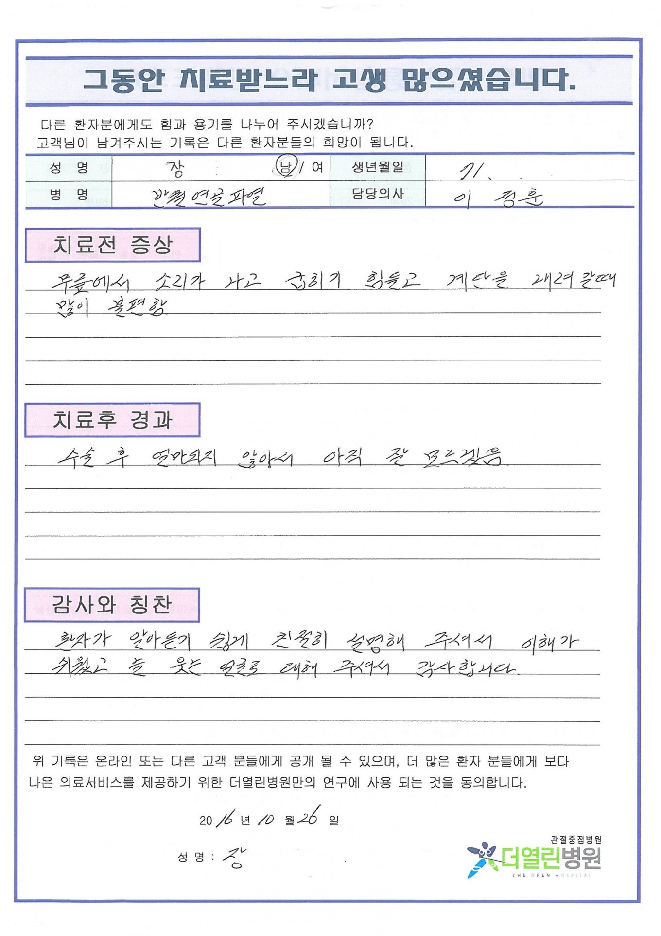 반월상 연골 파열 페이지 정보 작성자 관리자 댓글 0건 조회 129회 작성일 16-11-06 10:09 본문 . 목록 이전글원발성 무릎관절증 16.11.20 다음글십자인대와 복합된 반달연골의 손상 16.11.06 댓글목록 댓글목록 등록된 댓글이 없습니다.