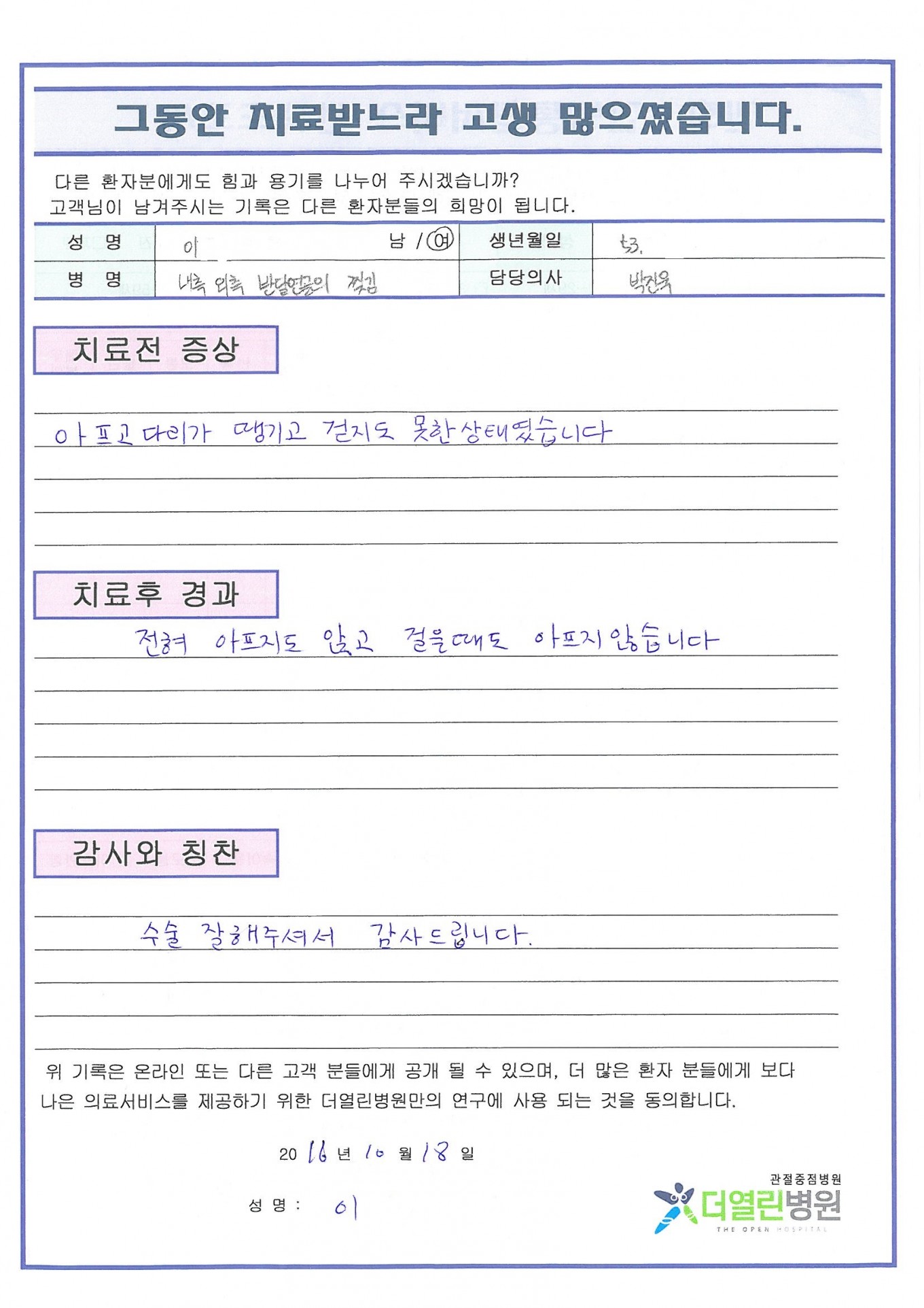 내측및외측 반달연골의 찢김 페이지 정보 작성자 관리자 댓글 0건 조회 81회 작성일 16-12-02 20:12 본문 . 목록 이전글양쪽 퇴행성 관절염 16.12.02 다음글양쪽 원발성 무릎관절증 16.12.02 댓글목록 댓글목록 등록된 댓글이 없습니다.