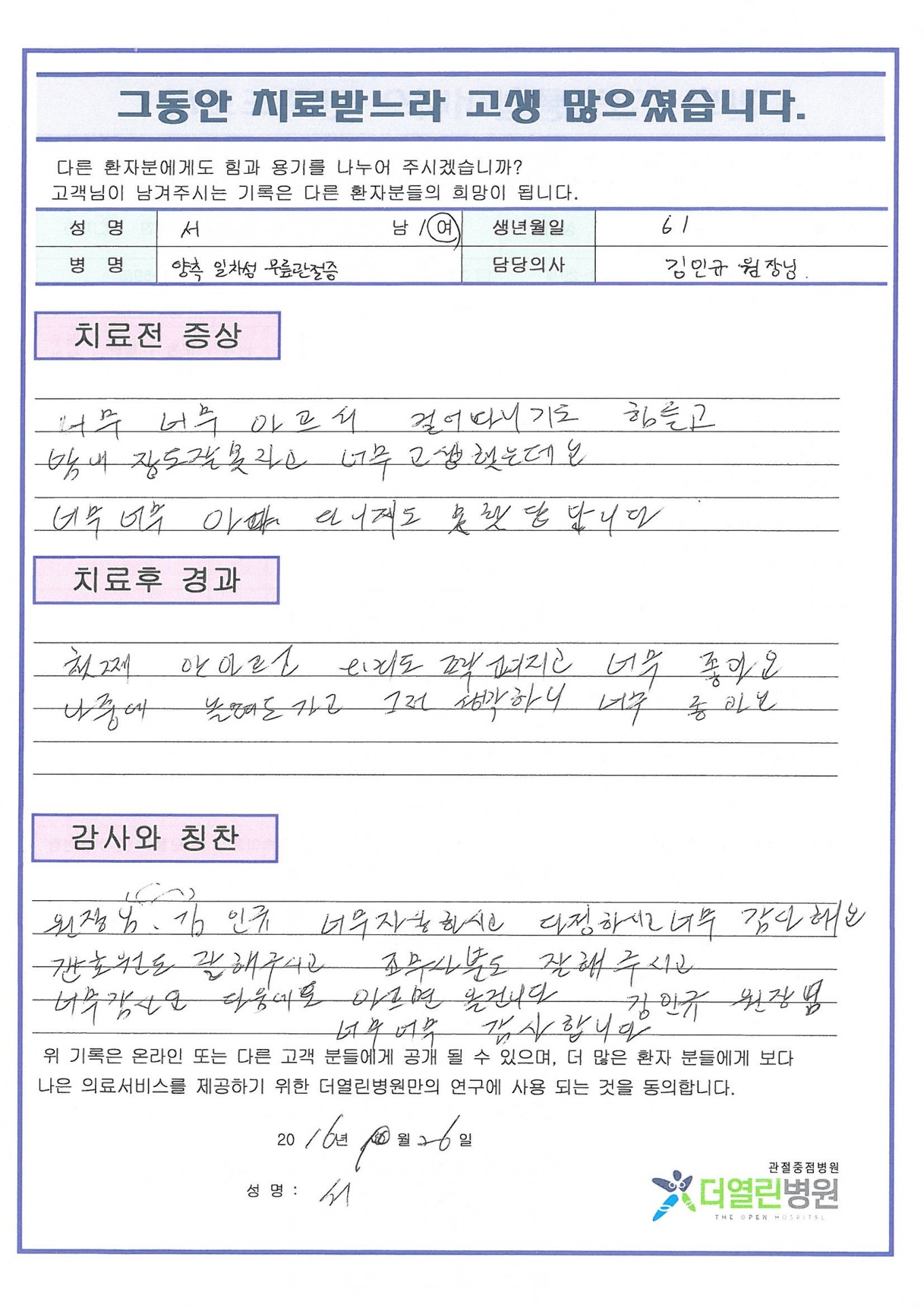 양쪽 일차성 무릎관절증 페이지 정보 작성자 관리자 댓글 0건 조회 63회 작성일 16-10-09 19:18 본문 . 목록 이전글발목의 윤활낭염 16.10.09 다음글양쪽 원발성 무릎관절증 16.10.08 댓글목록 댓글목록 등록된 댓글이 없습니다.