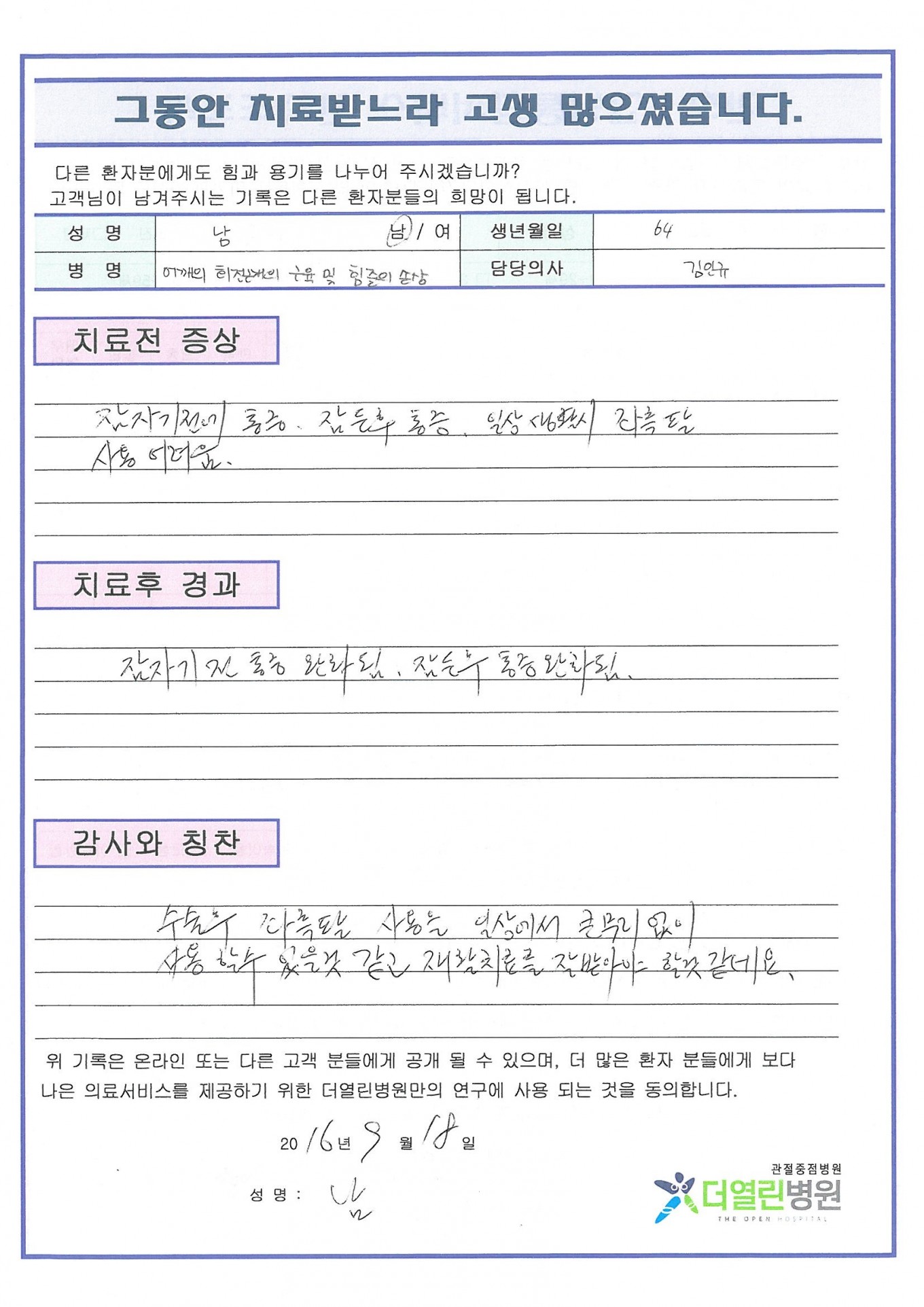어깨의 회전근개의 근육 및 힘줄의 손상 페이지 정보 작성자 관리자 댓글 0건 조회 71회 작성일 16-10-19 20:14 본문 . 목록 이전글내측 및 외측 반달연골의 찢김 16.10.19 다음글양쪽 원발성 무릎관절증 16.10.14 댓글목록 댓글목록 등록된 댓글이 없습니다.
