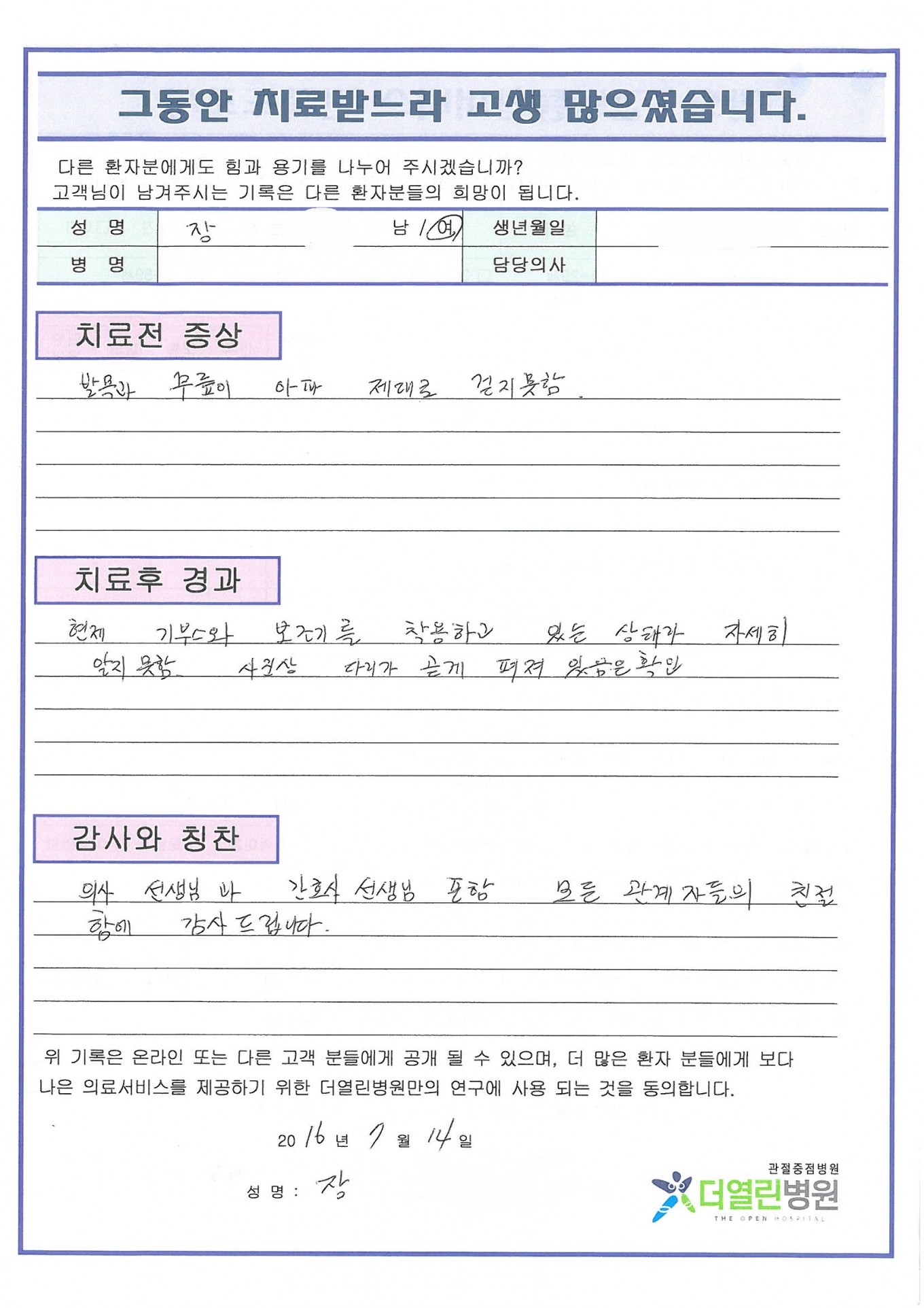 양쪽 일차성 무릎관절증 페이지 정보 작성자 관리자 댓글 0건 조회 64회 작성일 16-08-30 20:39 본문 . 목록 이전글오래된 찢김 또는 손상으로 인한 반달연골의 장애 16.08.30 다음글오래된 양동이손잡이모양의 찢김 16.08.30 댓글목록 댓글목록 등록된 댓글이 없습니다.
