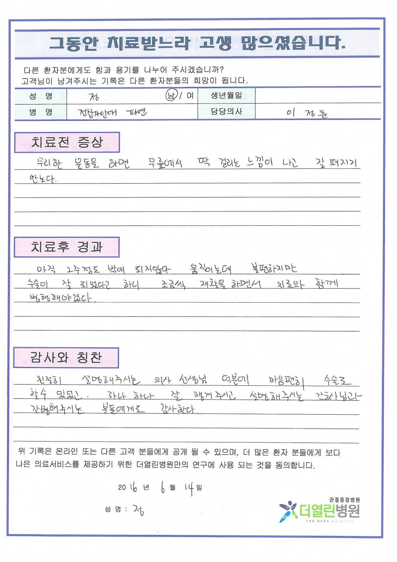 전십자인대의 파열 페이지 정보 작성자 관리자 댓글 0건 조회 62회 작성일 16-07-28 20:25 본문 . 목록 이전글내측 반달연골 찢김 16.07.28 다음글척골의 골절 16.07.28 댓글목록 댓글목록 등록된 댓글이 없습니다.