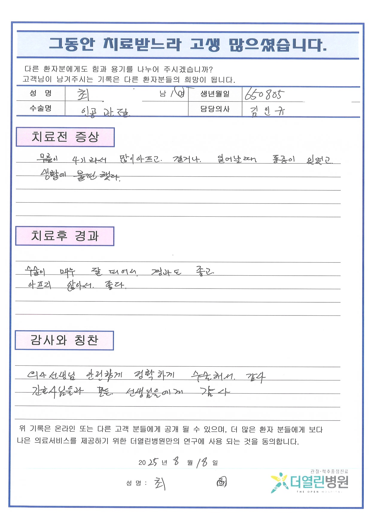 우측 무릎 인공관절치환술 페이지 정보 작성자 관리자 댓글 0건 조회 41회 작성일 25-09-04 11:02 본문 목록 이전글좌측 원위 경골 및 근위비골 관혈적 정복술 및 금속판고정술 25.09.04 다음글좌측 무릎 인공관절치환술 25.09.04 댓글목록 댓글목록 등록된 댓글이 없습니다.