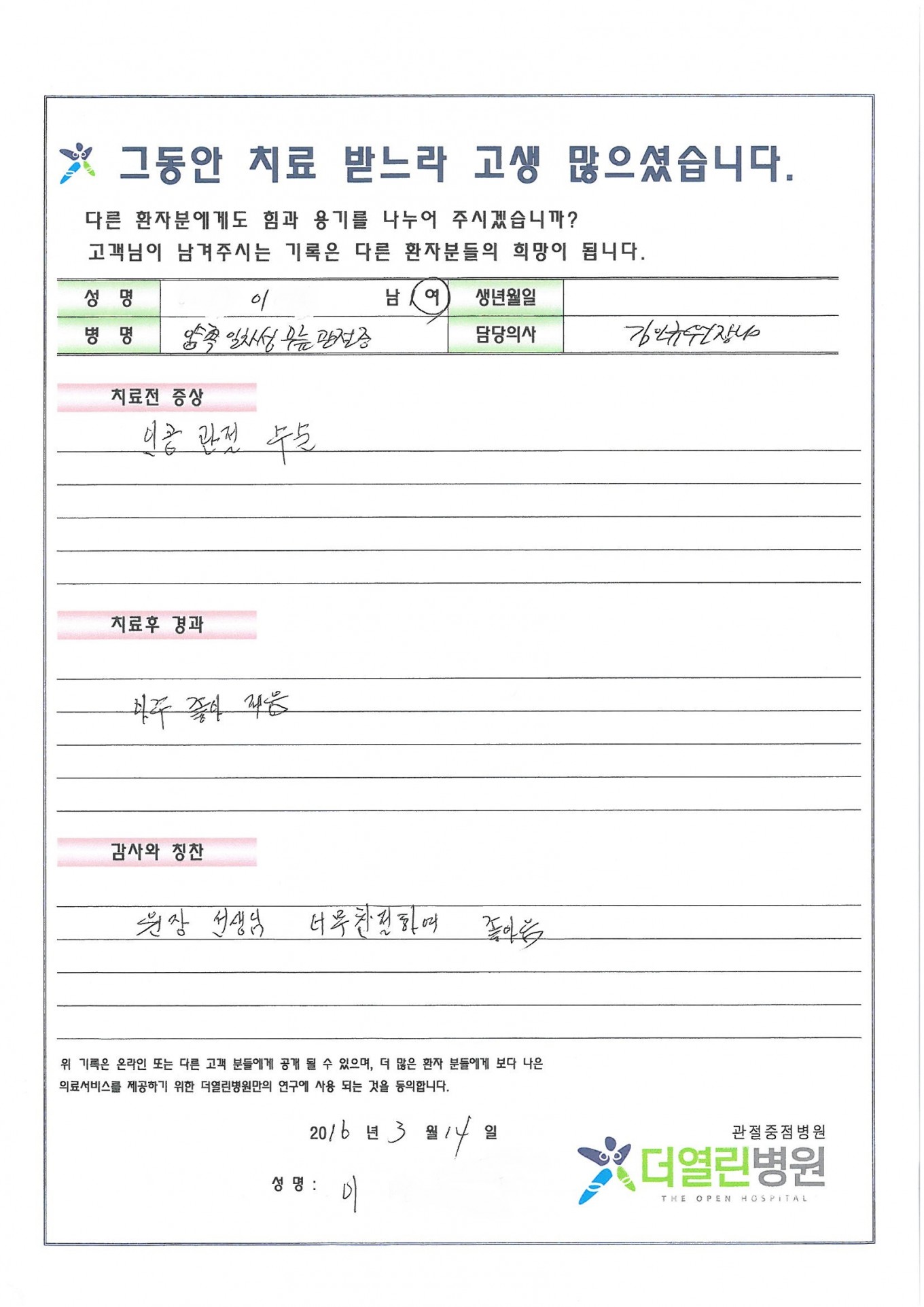 양쪽 일차성 무릎관절증 페이지 정보 작성자 관리자 댓글 0건 조회 71회 작성일 16-03-24 21:01 본문 . 목록 이전글반월판 연골 절제술 16.03.24 다음글양쪽 원발성 무릎관절증 16.03.24 댓글목록 댓글목록 등록된 댓글이 없습니다.