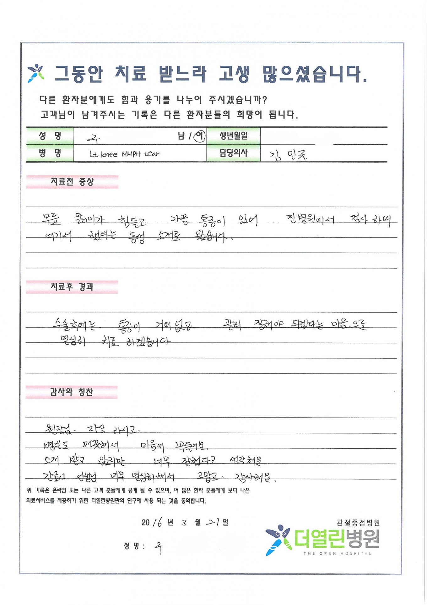 좌측 슬관절 내측반월상연골 파열 페이지 정보 작성자 관리자 댓글 0건 조회 154회 작성일 16-04-02 14:27 본문 . 목록 이전글양쪽 일차성 무릎관절증 16.04.02 다음글전십자인대의 파열 16.04.02 댓글목록 댓글목록 등록된 댓글이 없습니다.