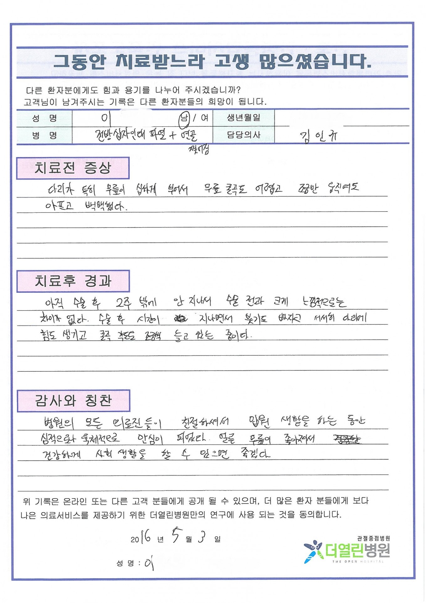 전십자인대의 파열 페이지 정보 작성자 관리자 댓글 0건 조회 88회 작성일 16-05-03 22:59 본문 . 목록 이전글반월상연골이식술 16.05.03 다음글양쪽 원발성 무릎관절증 16.04.02 댓글목록 댓글목록 등록된 댓글이 없습니다.