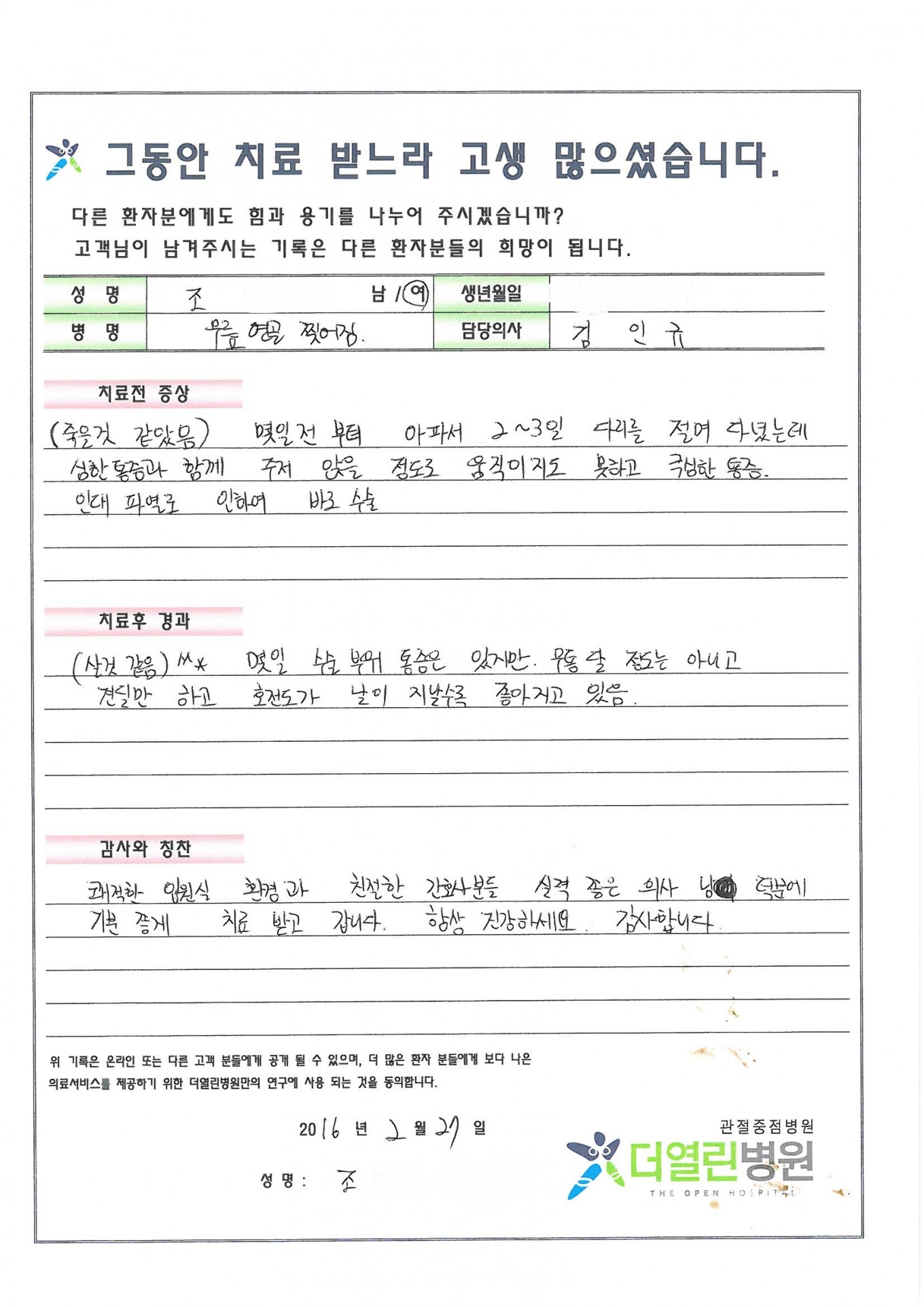 무릎 연골의 찢어짐 페이지 정보 작성자 관리자 댓글 0건 조회 87회 작성일 16-03-04 03:43 본문 . 목록 이전글양측 일차성 무릎관절증 16.03.04 다음글전십자 인대의 파열 16.03.04 댓글목록 댓글목록 등록된 댓글이 없습니다.