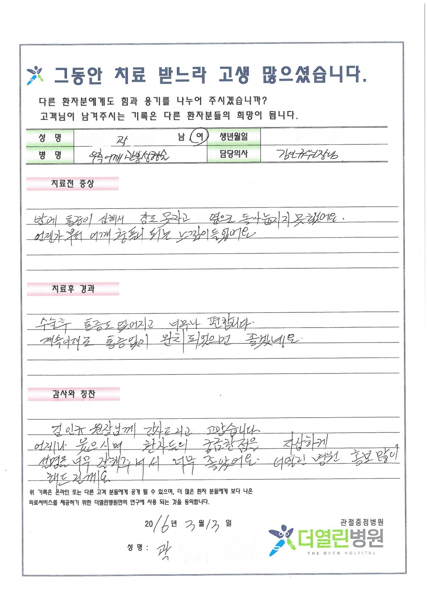 우측 어깨 관봉 성형술 페이지 정보 작성자 관리자 댓글 0건 조회 72회 작성일 16-03-24 20:59 본문 . 목록 이전글양쪽 원발성 무릎관절증 16.03.24 다음글반월상 연골 파열 16.03.24 댓글목록 댓글목록 등록된 댓글이 없습니다.