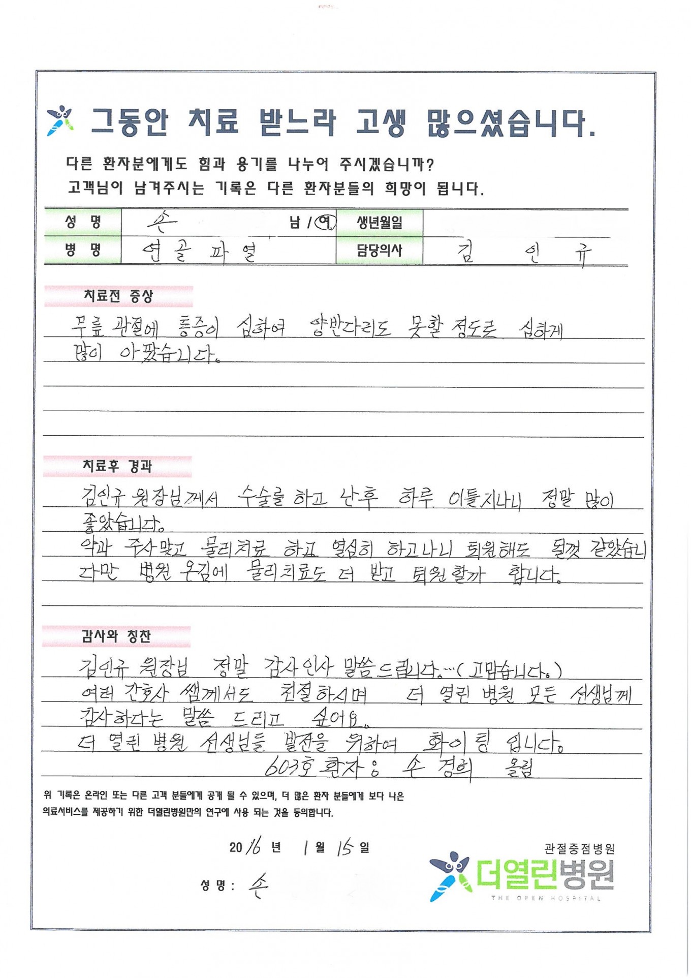 내측 반월상 연골 파열 페이지 정보 작성자 관리자 댓글 0건 조회 77회 작성일 16-01-19 15:20 본문 . 목록 이전글퇴행성 관절염 16.01.26 다음글우측 반달연골 절제술 16.01.19 댓글목록 댓글목록 등록된 댓글이 없습니다.