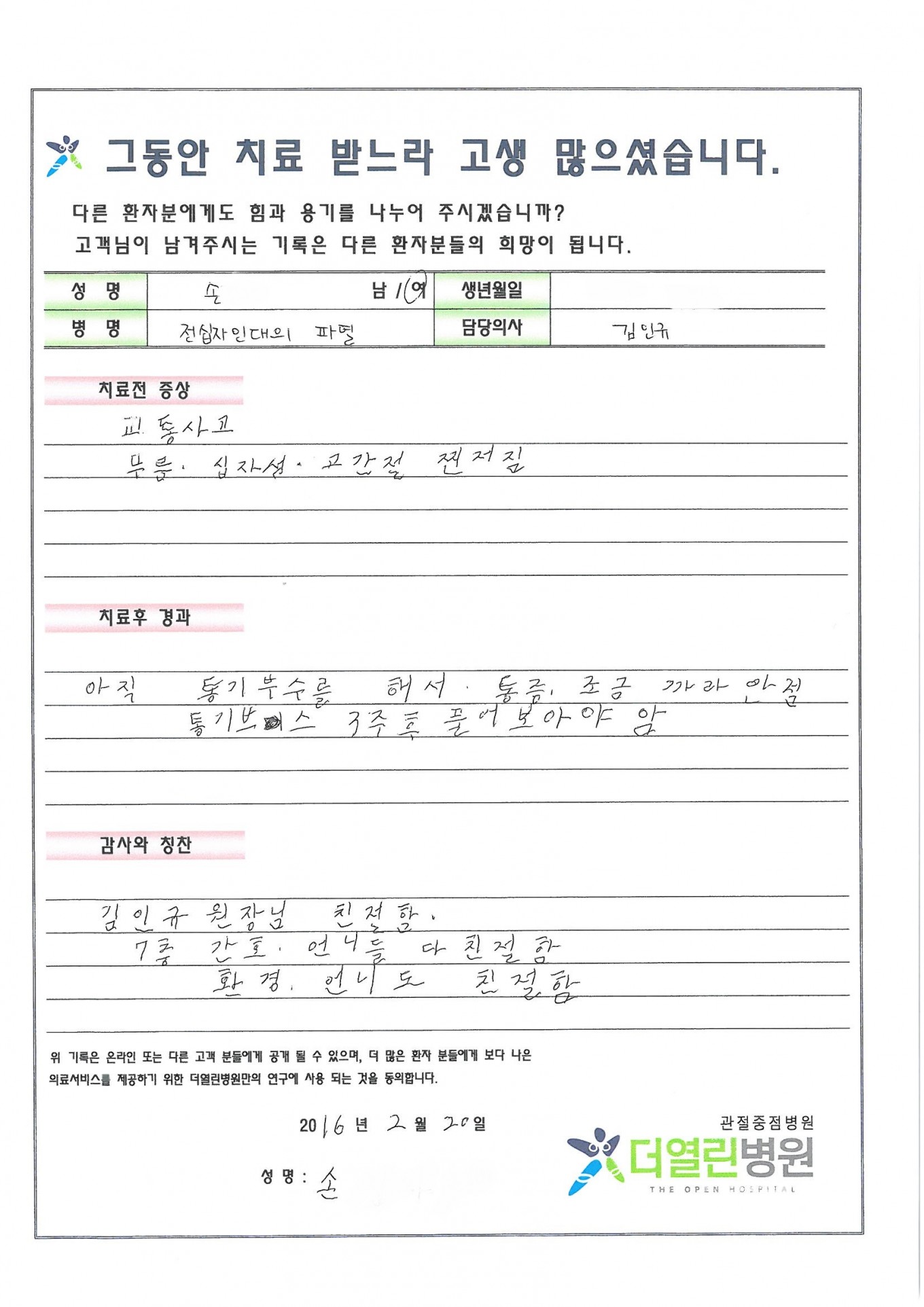 전방십자인대의 파열 페이지 정보 작성자 관리자 댓글 0건 조회 83회 작성일 16-02-25 09:32 본문 . 목록 이전글내측 및 외측 반달연골 찢김 16.02.25 다음글좌측 부분 반월상 연골 절제술 16.02.25 댓글목록 댓글목록 등록된 댓글이 없습니다.