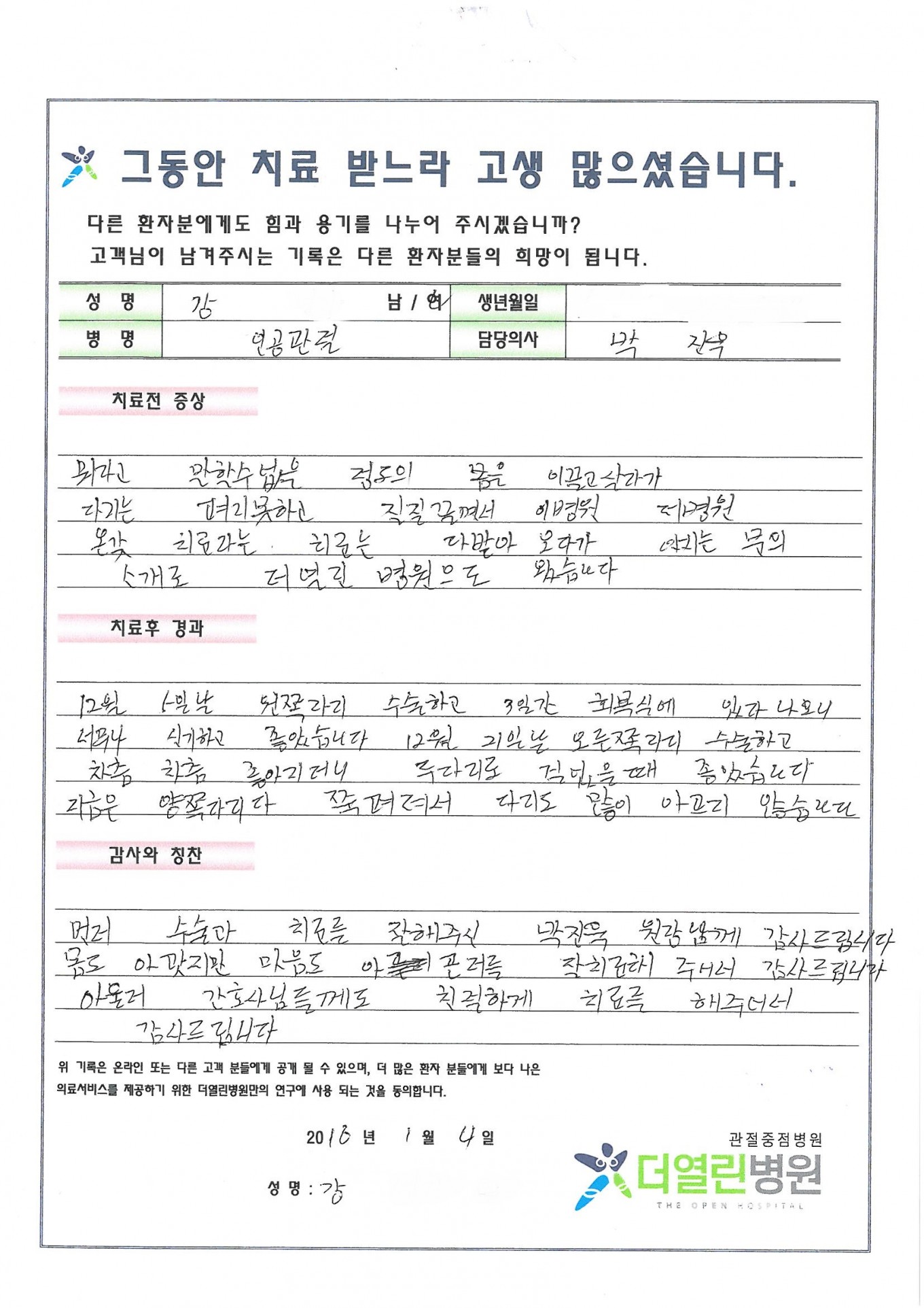 양측 슬관절 인공관절 수술 페이지 정보 작성자 관리자 댓글 0건 조회 94회 작성일 16-01-14 11:14 본문 . 목록 이전글우측 발목 퇴행성 관절염 16.01.14 다음글퇴행성 관절염 15.12.29 댓글목록 댓글목록 등록된 댓글이 없습니다.