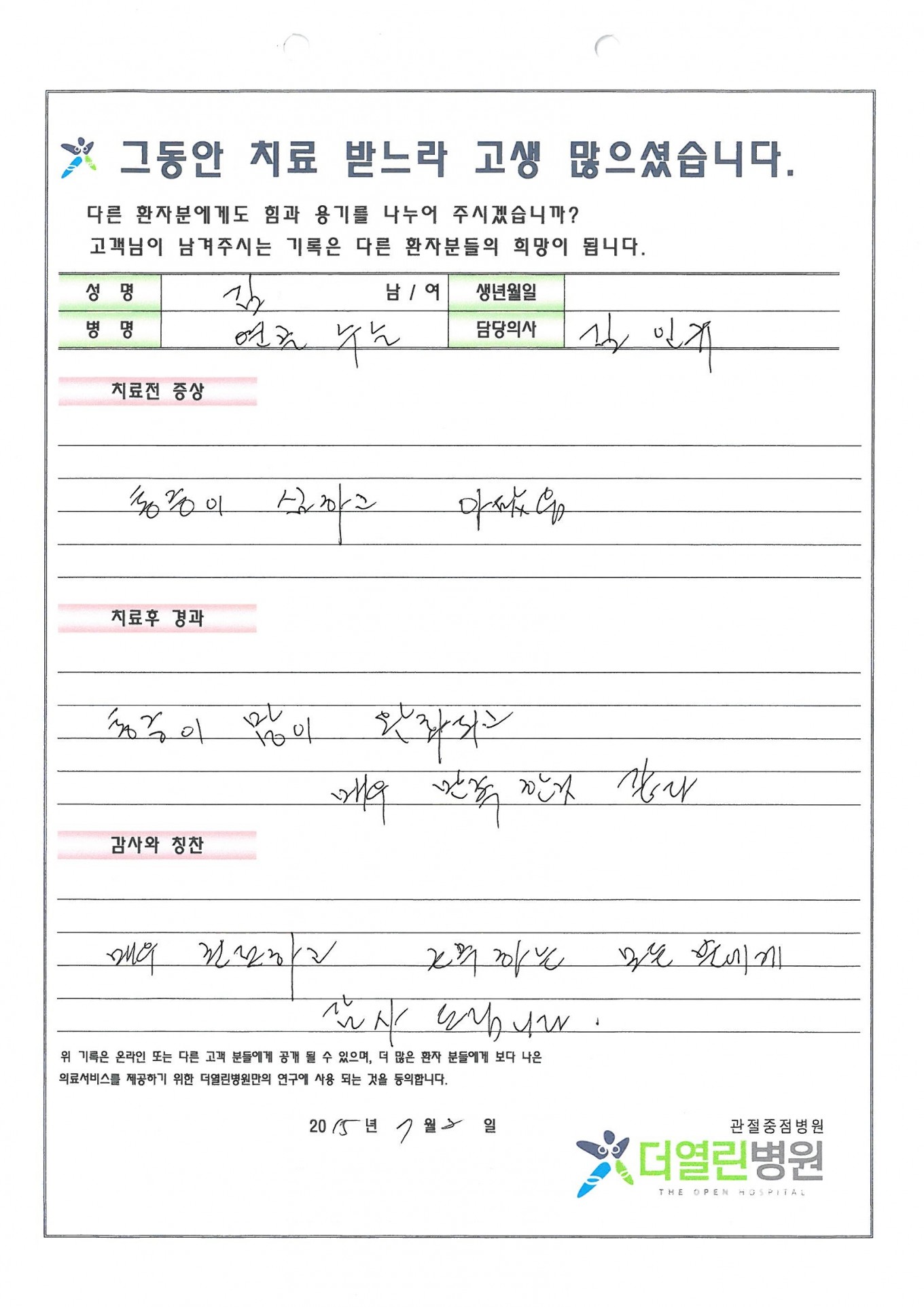 더열린병원의 의술은 상술이 아닌 인술입니다.
