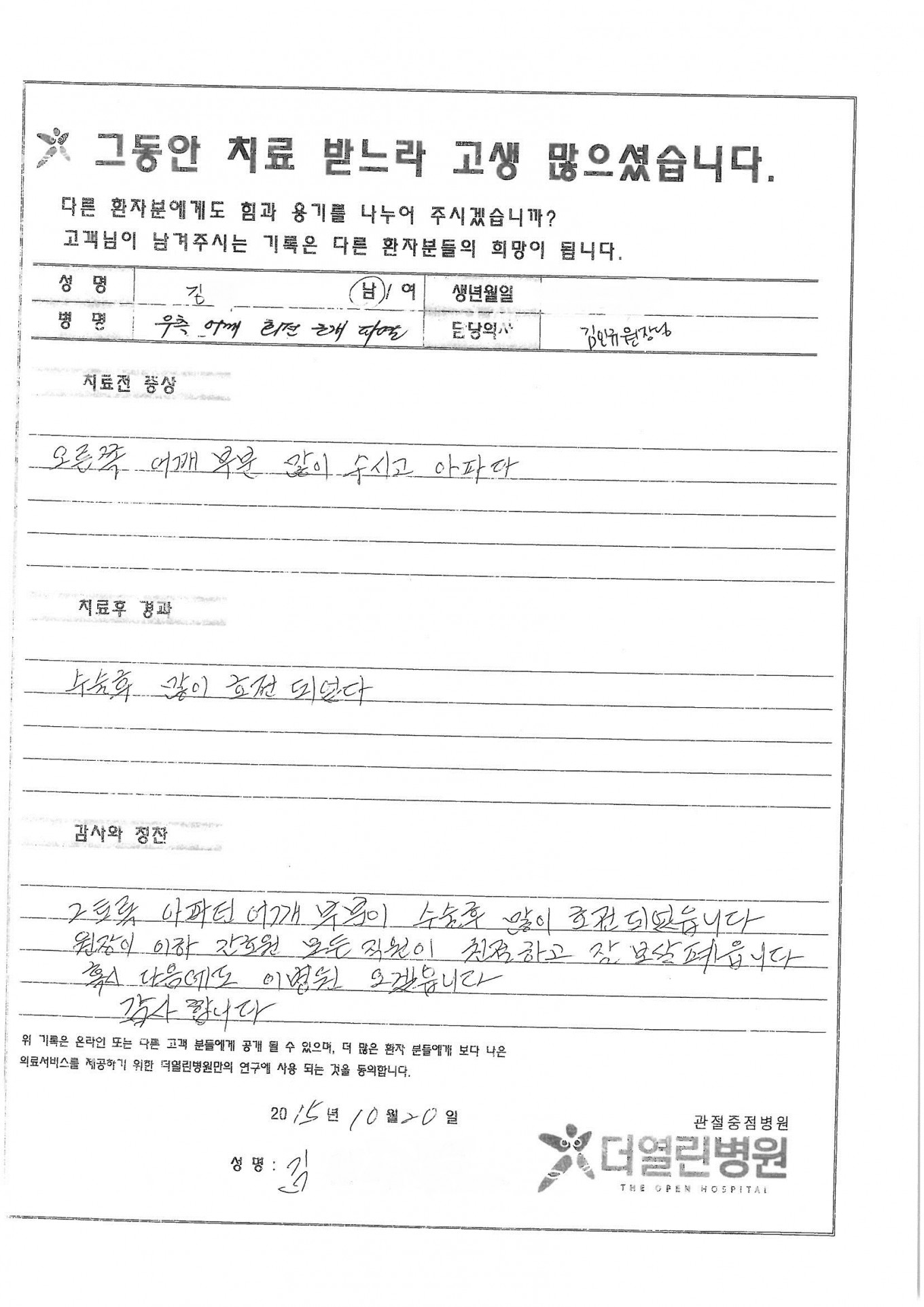 어깨 회전근개 파열 페이지 정보 작성자 관리자 댓글 0건 조회 74회 작성일 15-11-06 14:05 본문 . 목록 이전글반월상 연골 절제술 15.11.06 다음글어깨 회전근개 파열 15.11.06 댓글목록 댓글목록 등록된 댓글이 없습니다.