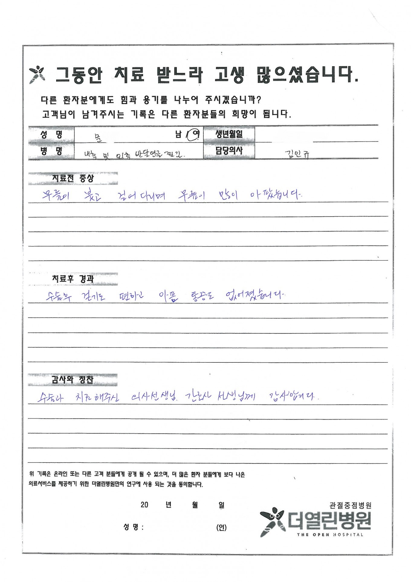 반월상 연골 절제술 페이지 정보 작성자 관리자 댓글 0건 조회 90회 작성일 15-11-12 09:36 본문 . 목록 이전글양쪽 무릎 인공관절 치환술 15.11.17 다음글좌측 족관절 화농성 건막 (배농술 및 변연 절제술) 15.11.12 댓글목록 댓글목록 등록된 댓글이 없습니다.