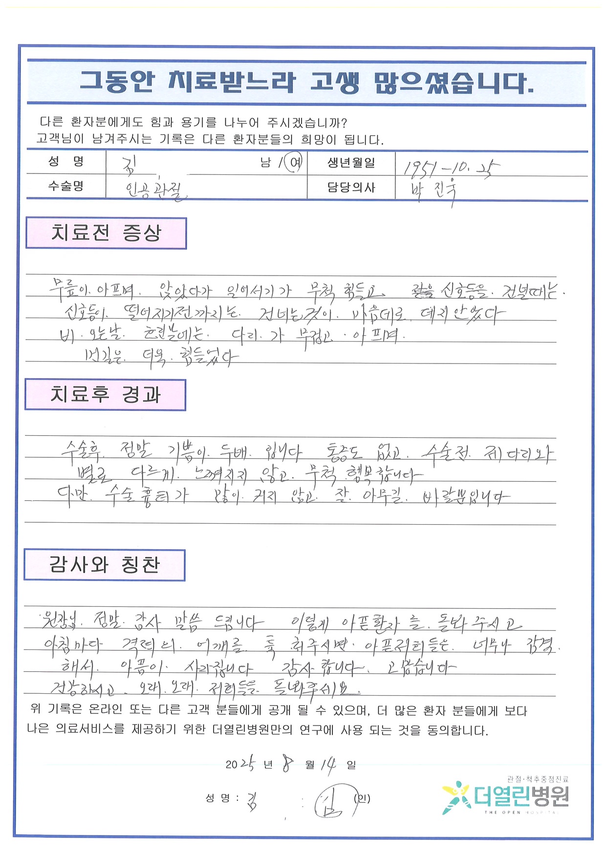 양측 무릎 인공관절치환술 페이지 정보 작성자 관리자 댓글 0건 조회 35회 작성일 25-09-04 10:51 본문 목록 이전글우측 무릎 인공관절치환술 25.09.04 다음글양측 무릎 인공관절치환술 25.09.04 댓글목록 댓글목록 등록된 댓글이 없습니다.