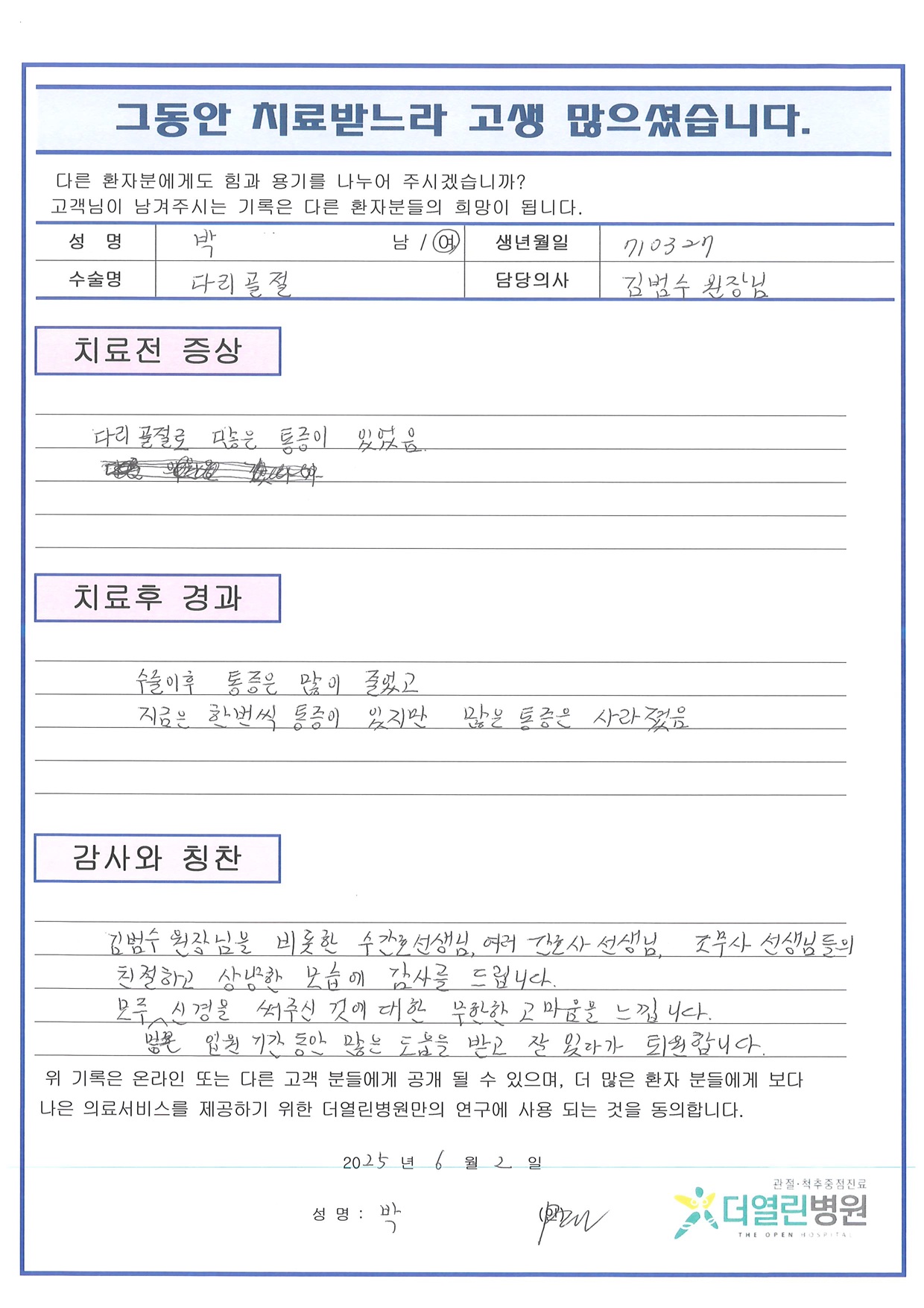좌측 발목 관혈적 정복술 및 금속판 고정술 페이지 정보 작성자 관리자 댓글 0건 조회 40회 작성일 25-07-02 15:07 본문 목록 이전글좌측요골 관혈적 정복술 및 금속판 고정술 25.07.02 다음글좌측 발목 외복사뼈 관혈적 정복술 및 금속판 고정술 25.07.02 댓글목록 댓글목록 등록된 댓글이 없습니다.