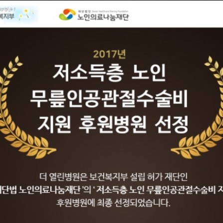 93. 2017년 저소득층 노인 무릎인공관절수술비지원 노인의료나눔재단 후원병원 선정.